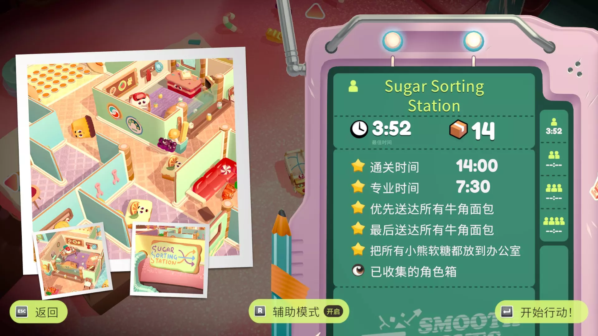 优先送达所有牛角包 共3个 最后送达所有牛角包 牛角包招你惹你了 把所有小熊软糖都放到办公室 共6个