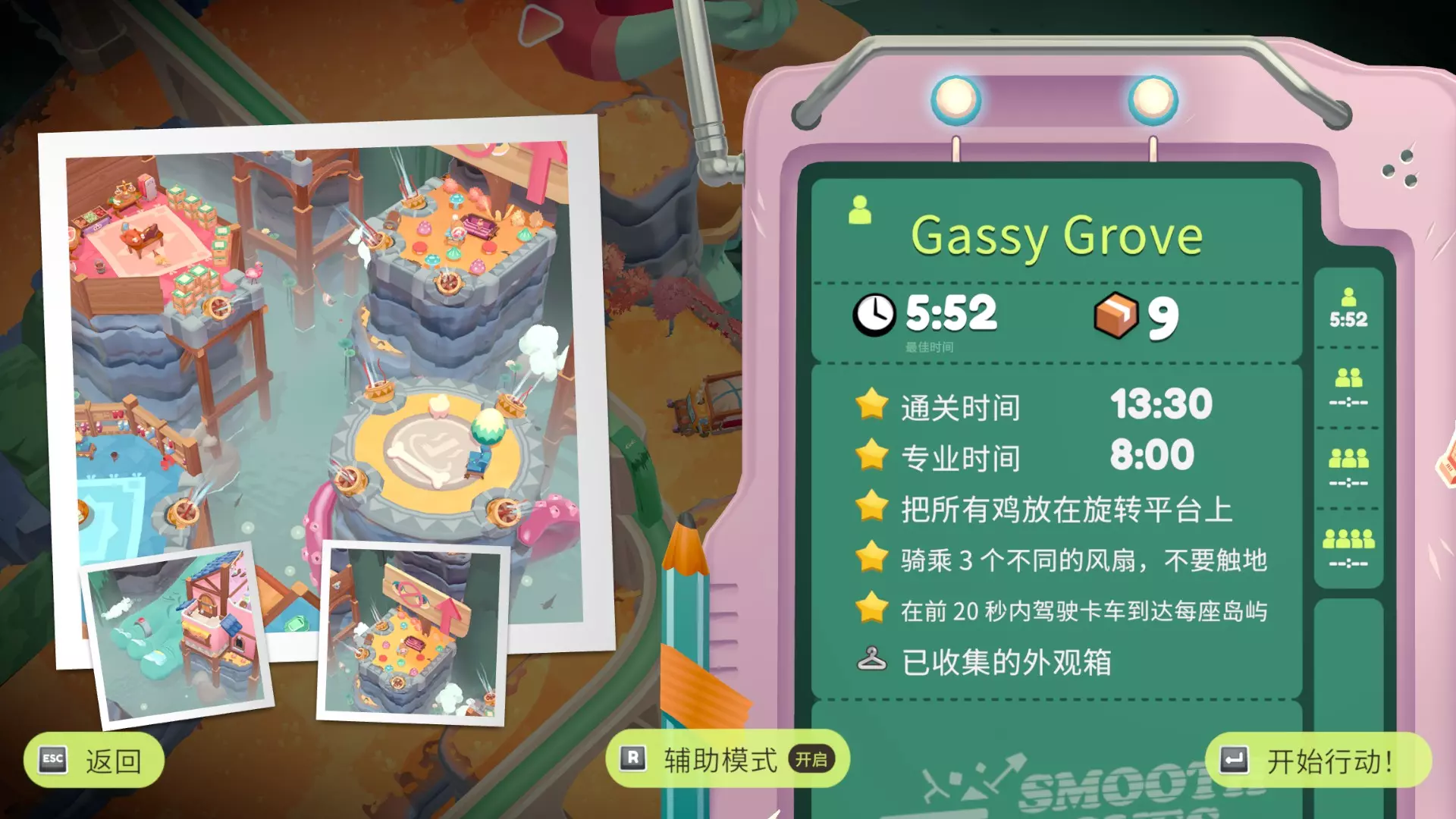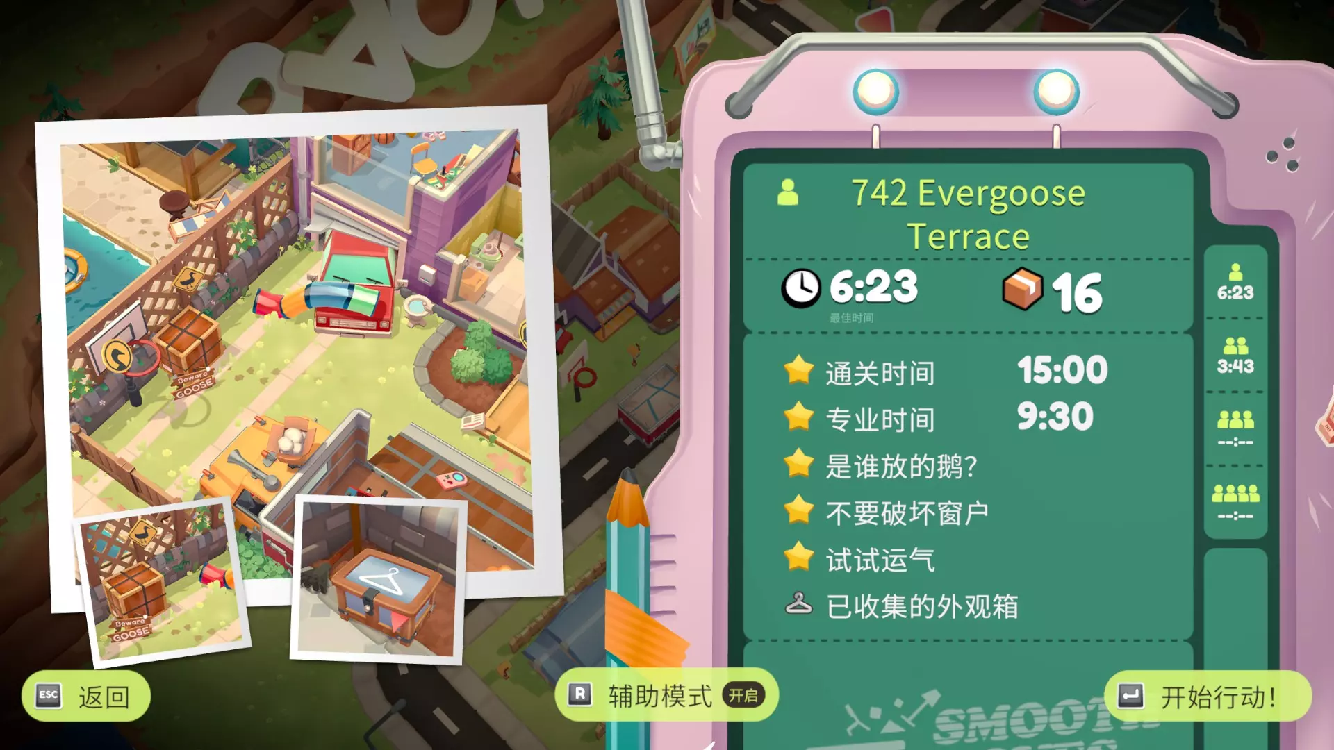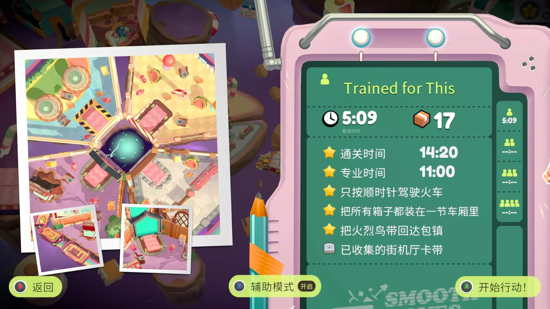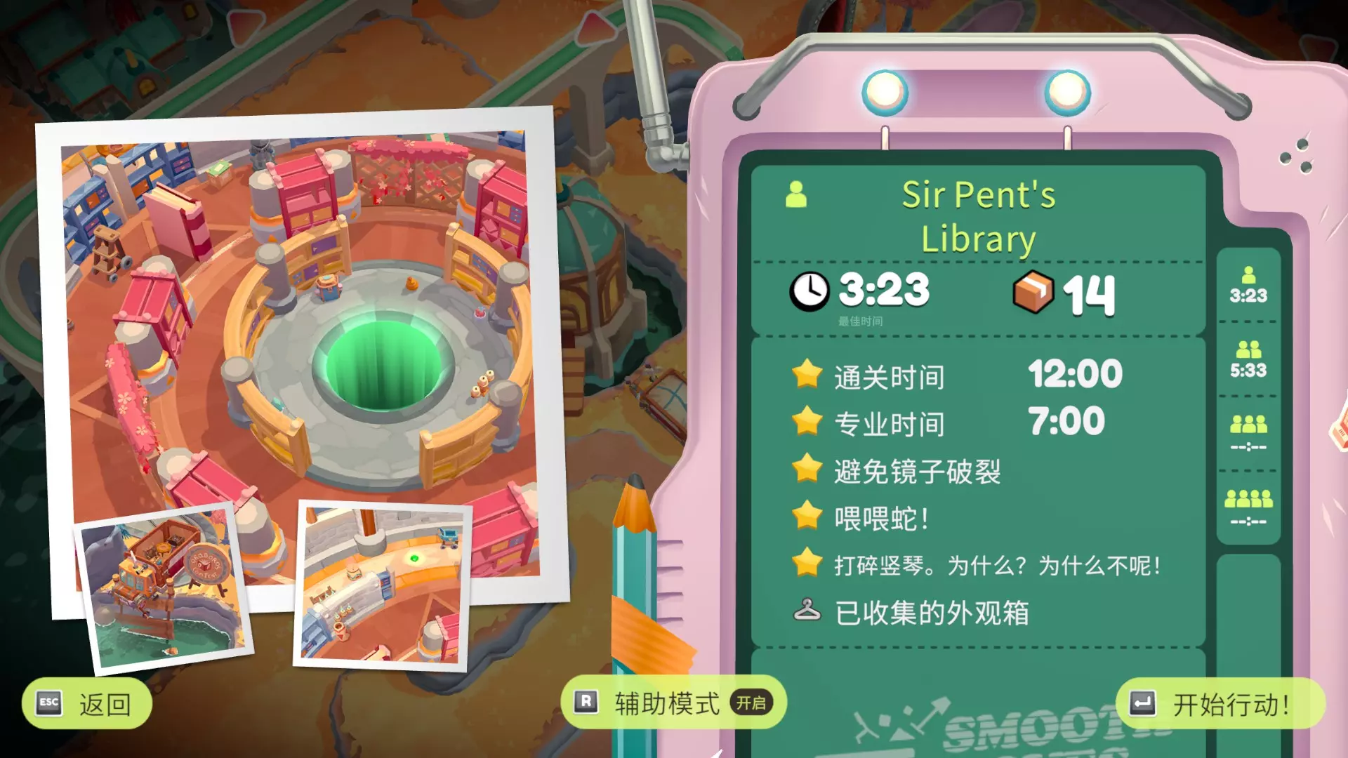今天发现整个游戏有且只有一篇英文成就指南(震惊) 因为游戏翻译问题有的挑战看起来很有迷惑性,想看简中的可以参考一下这篇,大部分挑战是帖主单人做的所以开了辅助模式,挑战时间比较宽松,关卡顺序不一定准,仅供参考,有误可留言基本都会看 部分挑战达成条件参考来源:【B站up活跃度低的屠夫】 小tips:挑战可以分次完成 序章·达包镇 Billie's Bungalow