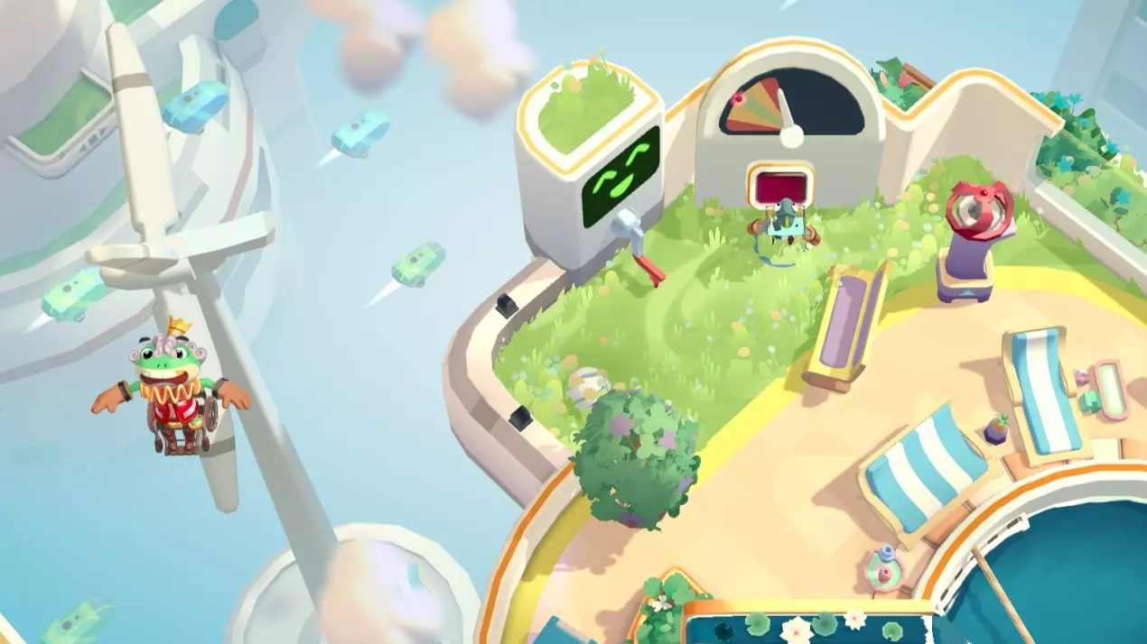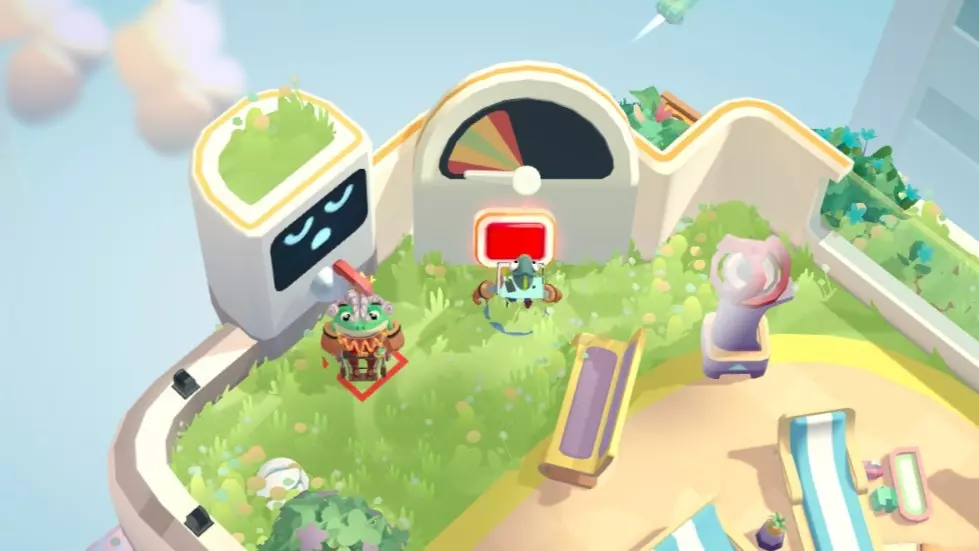 我相信我能飞! 单角色无法完成,需要两个可操作角色,单人完成需要在菜单界面增加一个本地角色。 角色A站在高尔夫发球机前,角色B拍打按钮把A飞到对岸就行。