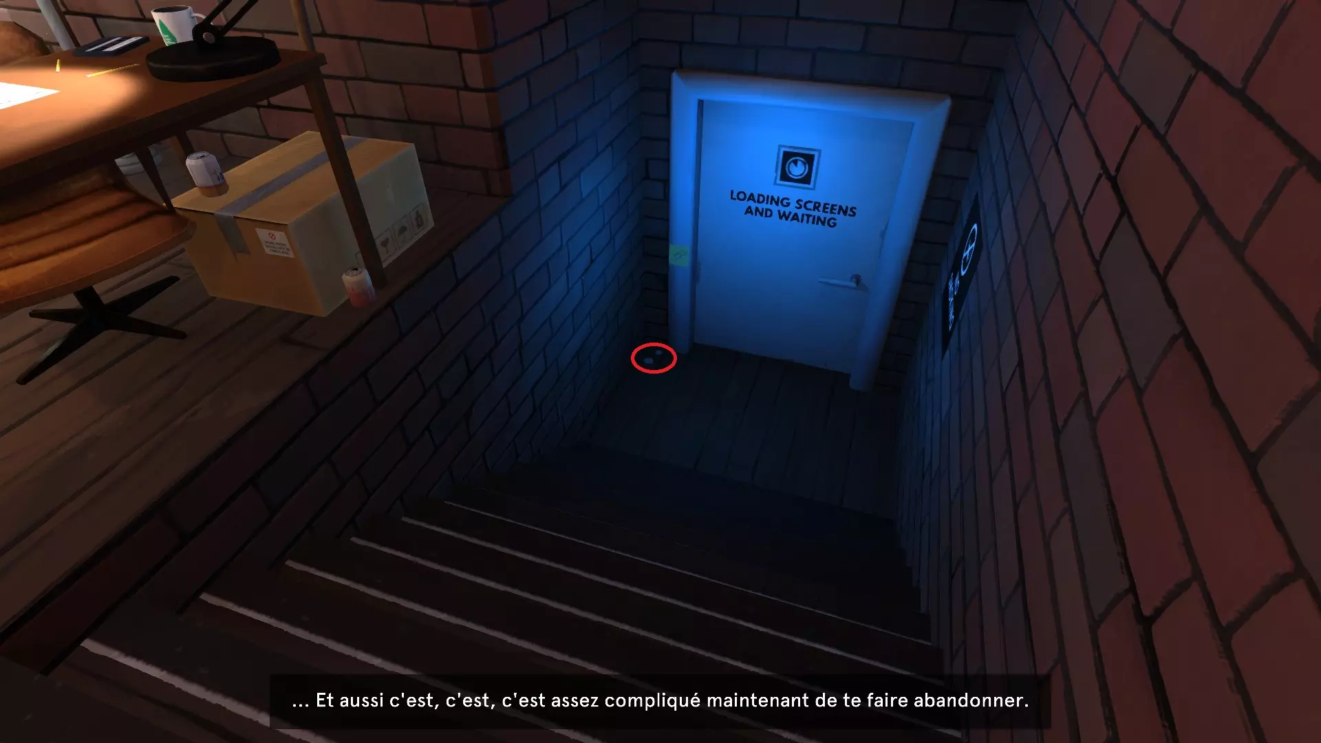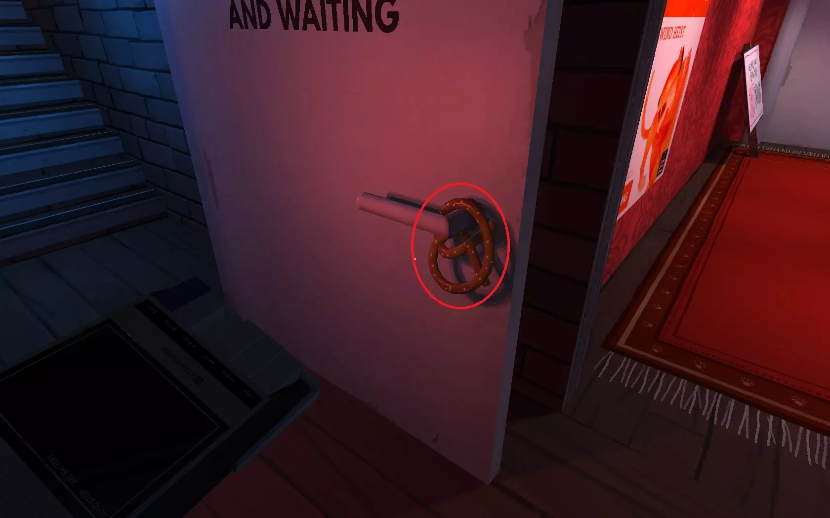 然后在右边,当你打开下一个房间的门时(两个房间) 注意!不要穿过那扇门,它会在你身后关上
