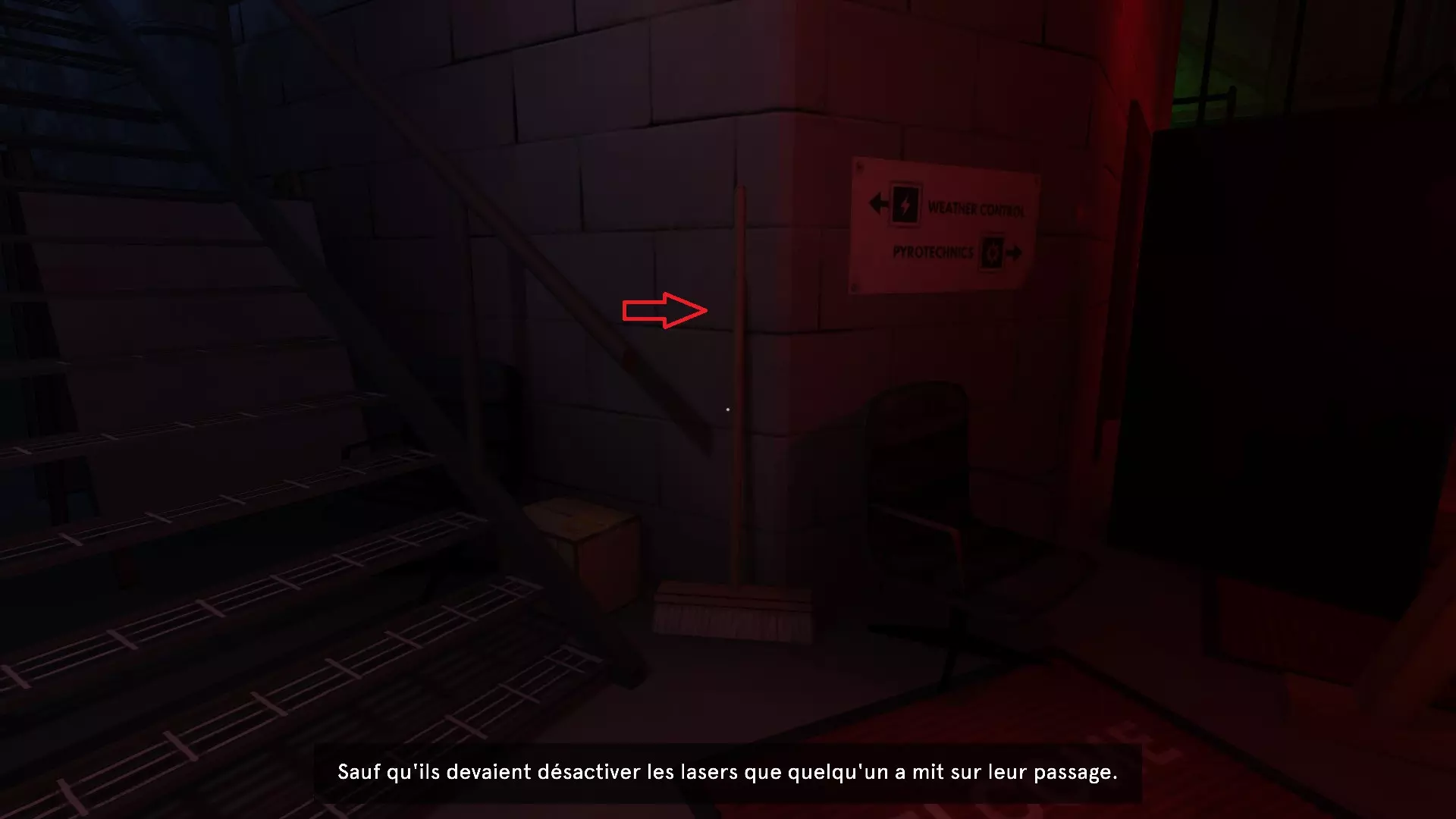 在阴影之中 切断所有灯光的电源。 在第8个房间: 与扫帚互动。