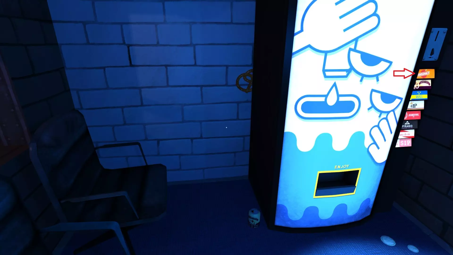 开始抢劫 启动《Dr. Langeskov, The Tiger, and The Terribly Cursed Emerald: A Whirlwind Heist》 关卡2 房间1 捡起自动售货机前的硬币(2枚)
