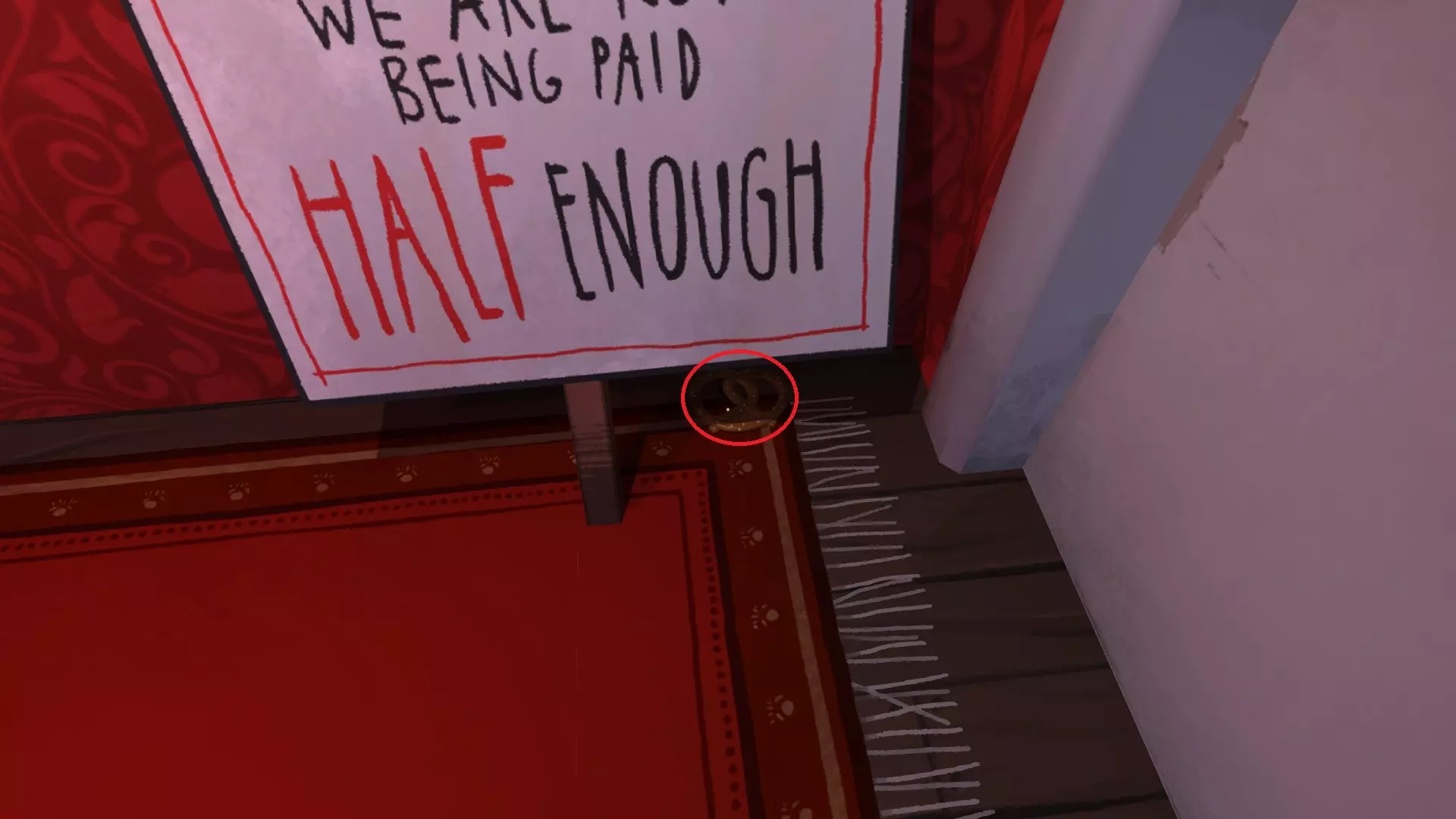 在第三个房间:拿起窗帘后面的椒盐卷饼