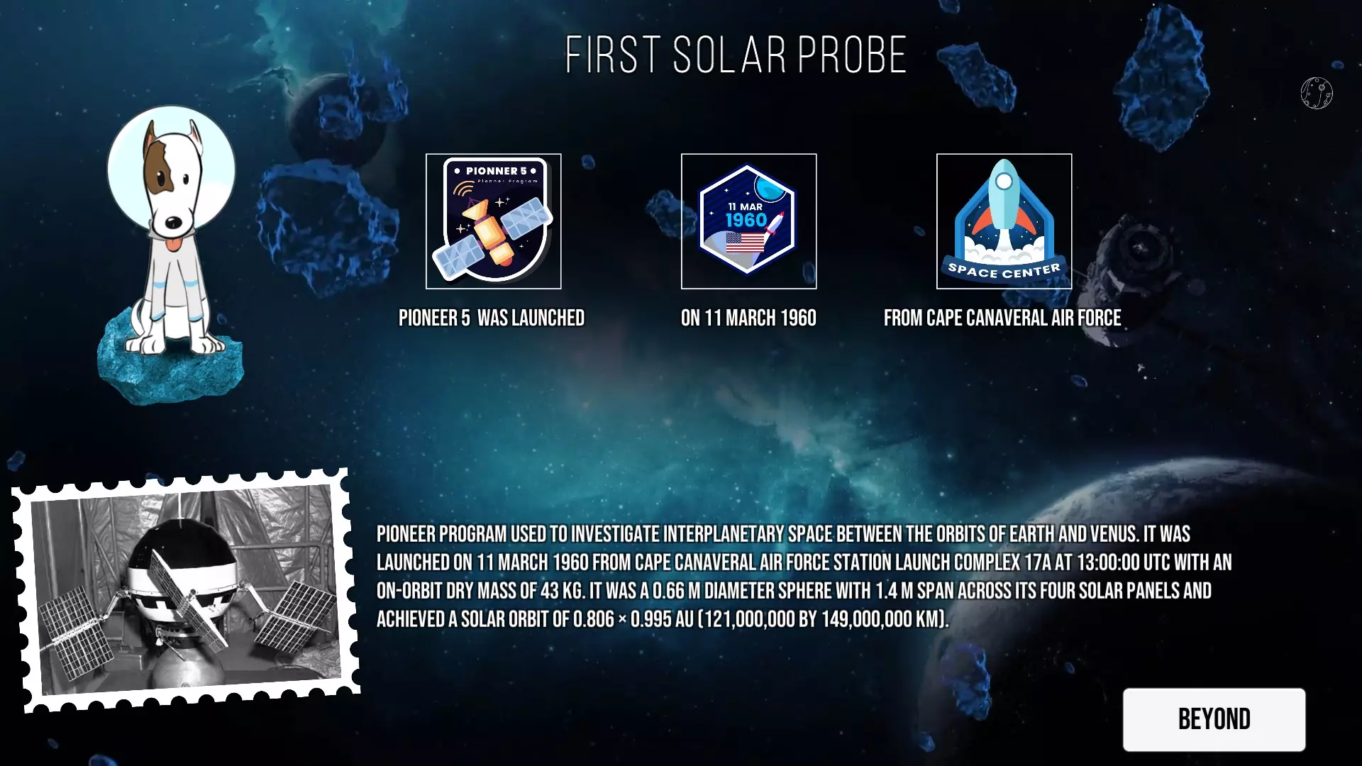 图片攻略 简介 以有趣的方式了解太空! 将相应图标移至上方指定位置。 1960-1964 首批太阳探测器