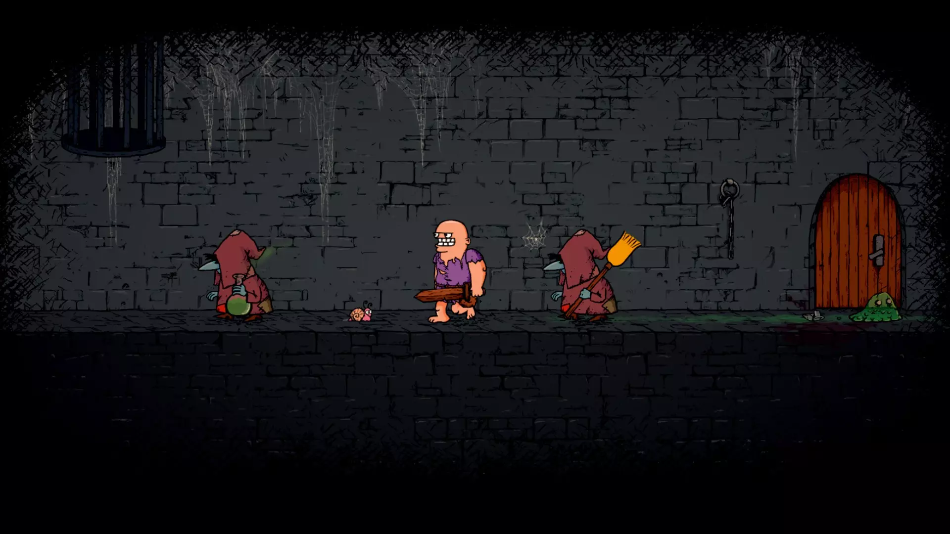 这个敌人有两种类型——投掷药水的和普通持杖的。这个老太婆有一根可以夺走的法杖,用来攻击其他敌人。那些投掷药水的敌人能投掷酒精、毒药、爆炸药水等等。还有一些“狙击手”老太婆,会投掷危险的药水,比如死亡药水、毒药。 史莱姆
