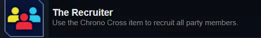 其实很简单。你必须在哈乐仍在队伍中时通关游戏并保存,然后从该存档继续游戏。之后,当你在次元漩涡中使用时空十字架时,她就会和其他人一起出现。在其中一次游戏过程中这样做,同时招募你之前没招募过的其他角色。例如,我在第二次游戏时招募了盖尔,然后选择不救基德以招募那些角色。接着,在第三次游戏中获得皮埃尔后使用时空十字架,瞧:解锁【The Recruiter】成就。 开始部分 • 从 Serge 醒来开始,前往奥帕萨海滩,在紫色虫洞使用时间蛋,与时间吞噬者战斗,以获得结局 #1 及其对应的成就:【The Developers’ Room】。建议:给 Serge 装备【红色胸针】以防止混乱状态,因为在战斗中如果没人能为 Serge 解除混乱,这绝对是最烦人的状态效果。重要信息:你必须在码头与 Leena 对话前完成此事,否则要等到下一周目才有机会。暂时不要招募 Poshul,因为 Serge 需要独自战斗才能达成结局 #1。 • 为推进剧情,去蜥蜴岩获取科莫多龙鳞片给 Leena,然后在奥帕萨海滩与她对话。 • Serge 首次进入异世界后,前往紫色虫洞并与时间吞噬者战斗,以达成结局 #2 及对应的成就:The Acacian Empire。重要信息:你必须在抵达特米纳前达成此结局。• 要推进剧情,需在阿尔尼村的码头与【另一个世界】的莉娜对话,然后前往嚎叫岬查看赛尔盖的坟墓。与卡什战斗。前往化石谷;与震动兄弟战斗。前往特米纳。 妮基、拉兹莉、结局#4及结局#3 你可以招募妮基、盖尔或皮埃尔。但要达成结局#3,必须招募妮基,所以如果你在之前的周目中已经招募过他,就需要再进行一周目才能集齐所有角色。 • 在特米纳,与擦拭毒蛇雕像的男子对话,触发与基德的剧情。前往妮基的船,得知他失踪后,前往暗影森林。 • 在小瀑布洞穴下方获取香气袋,用花粉引诱 blob 到挡住道路的怪物处。与佐亚和震颤者战斗。进入树中并沿着路径前进。 • 在毒蛇庄园,前往马厩,给“龙”喂食最低量的食物以获得庄园钥匙。在庄园内,从蛇雕像旁的陷阱落下。与格伦一同找到龙骑士餐厅,然后前往休息区寻找密码。前往宝藏室。“密码”是沉默。从墙上取下银吊坠。经历露西亚的剧情。返回蛇雕像处输入正确密码。前往图书馆与玛茜战斗。在大厅中,按下左侧从后数第二根柱子上的开关。登上二楼。进入毒蛇的办公室,调查龙泪,与山猫战斗。• 当菜单界面出现时,把基德身上所有贵重物品都取下来,因为她暂时不会加入队伍,而且梅尔有点小偷小摸。 • 在古尔多夫,选择救基德,因为你也需要拉兹莉来达成结局3。 • 在基德中毒事件后,与龙神社的萨满对话,然后前往奥帕萨海滩,再次与那该死的时间吞噬者战斗,以达成结局4。你将获得成就:The Shop Staff and the Three Unlikely Heroes。重要信息:你可以在基德被治愈或招募拉兹莉之前完成此事。 • 在古尔多夫,去酒吧和矮人对话,获取绿色叮当器,这样你就能穿过九头蛇沼泽了。 • 前往奥帕萨海滩回到主世界,然后前往九头蛇沼泽。• 重要提示:若要招募拉兹莉,必须在与九头蛇战斗前前去营救她。从九头蛇沼泽的第一个场景开始,向左前往拉兹莉影子消失的方向。沿着路径前进,直到遭遇毕巴,获得毕巴笛。在开阔区域使用笛子,与翼足虫战斗,随后坠入破损地面,再与五脚怪战斗。从笼子中救出拉兹莉。不要让她加入对抗九头蛇的队伍。击败九头蛇后,调查其尸体可获得九头蛇体液。 • 离开九头蛇沼泽,前往奥帕萨海滩即可达成结局#3。你将获得成就:The Magical Dreamers。重要信息:队伍中必须有尼基和拉兹莉。 • 返回古尔多夫治疗基德,让她重新加入队伍。跳转到本攻略的【前往龙之堡】部分继续阅读。 皮耶尔或盖尔 & 不救基德 为简洁起见,我将说明皮耶尔和盖尔的流程以及不救基德的情况,因为招募尼基是获取某些结局的必要条件,而这些结局只能在救基德的情况下达成。 皮耶尔路线:前往扎帕的铁匠铺,进入东边的房间并与皮耶尔交谈。到南边的室外,与四处奔跑的孩子对话。获得英雄勋章后,再次与皮耶尔交谈。直接前往毒蛇庄园的正门。 盖尔路线:前往特米纳的酒吧。与科尔查(在神社附近)交谈以获得前往毒蛇庄园悬崖的搭车机会。攀爬悬崖并与鸟类敌人战斗。 • 一旦到达毒蛇庄园,后续步骤与尼基路线基本相同。• 当你抵达古尔多夫时,选择不救基德。 • 前往民居帐篷(位于商店帐篷东侧)与科尔查对话。玛莎建议去见萨满;龙神殿在最西边。前往古尔多夫入口处,玛莎正在那里等候。 • 前往特米纳入口,目睹格伦与卖花人交谈,然后返回玛莎所在之处。两人加入队伍,现在你获得了一艘船。 • 前往隐士藏身处;与哈蕾战斗。和拉迪乌斯对话。 继续进行下一环节(跳过第一个要点),因为此时无论你在特米纳选择了谁,后续流程大致相同。 前往龙之要塞 • 要推进剧情,需在特米纳入口处目睹格伦与卖花人交谈。返回科尔查处。前往烧毁的隐士藏身处;与哈蕾战斗。和拉迪乌斯对话。 • 尝试乘船前往派尔山,你会遇到无敌号,之后是幽灵船。提醒:在无敌号上与幽灵战斗时,要获取推进剧情所需的钥匙,你必须与每一个海盗对话,直到他们说没有钥匙或对话重复,否则,最后三个(都在一起的)海盗不会持有钥匙,你将不得不去寻找你遗漏的人。 • 在无敌号上的事件结束后,你需要水龙的保护才能通过派尔山。(注意:如果你没有帮助基德获取九头蛇毒液,现在你需要前往古尔