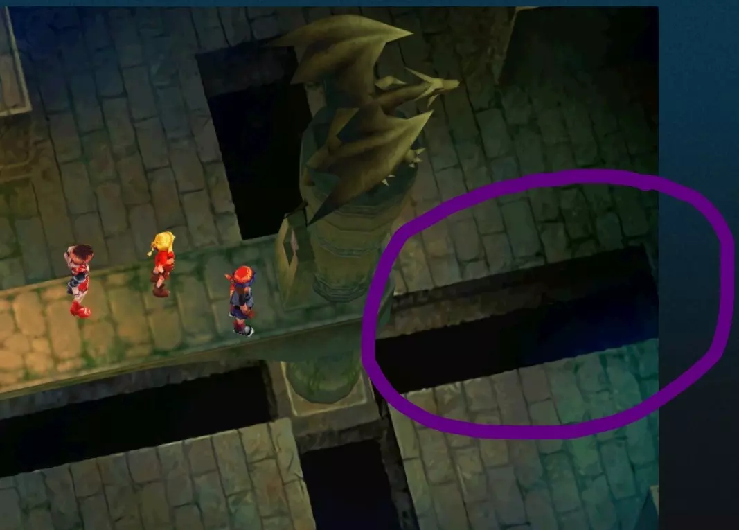 当斯普莉格失去求生意志后,使用关键道具中的时空十字架。至少要到第三次游玩时,你才能获得成就:The Recruiter。 • 前往隐士藏身处(另一个世界)。 露卡的家 • 与熔岩男孩战斗。在下一个区域,走上左边的楼梯。房间右上角是冰枪,拿走它。 • (可选)如果你想要基德的7级技能,阅读地板上的笔记,然后返回第一个房间。使用控制器上的L1键启动机器。