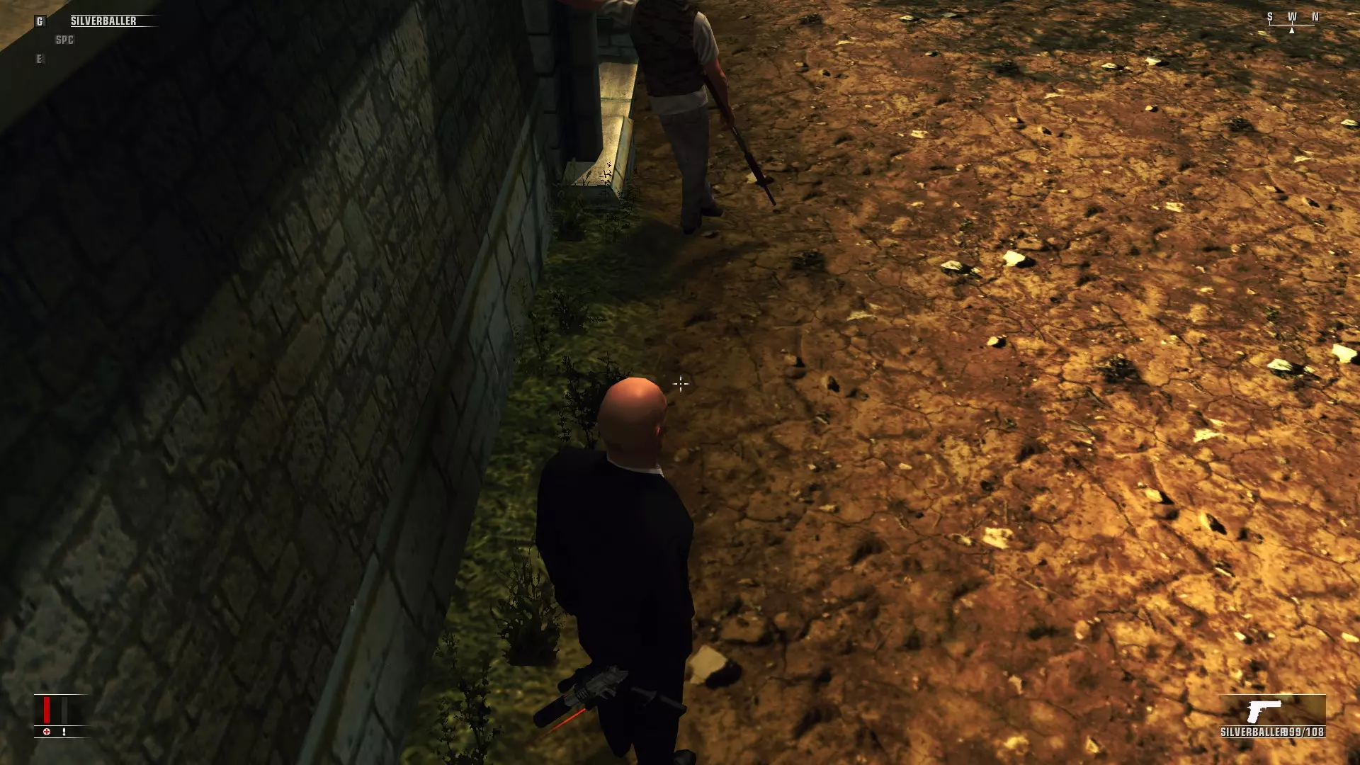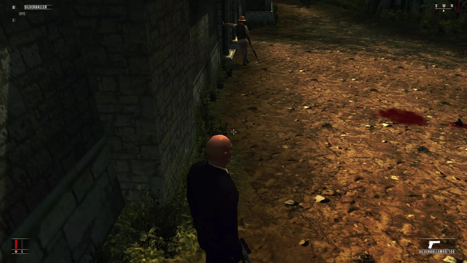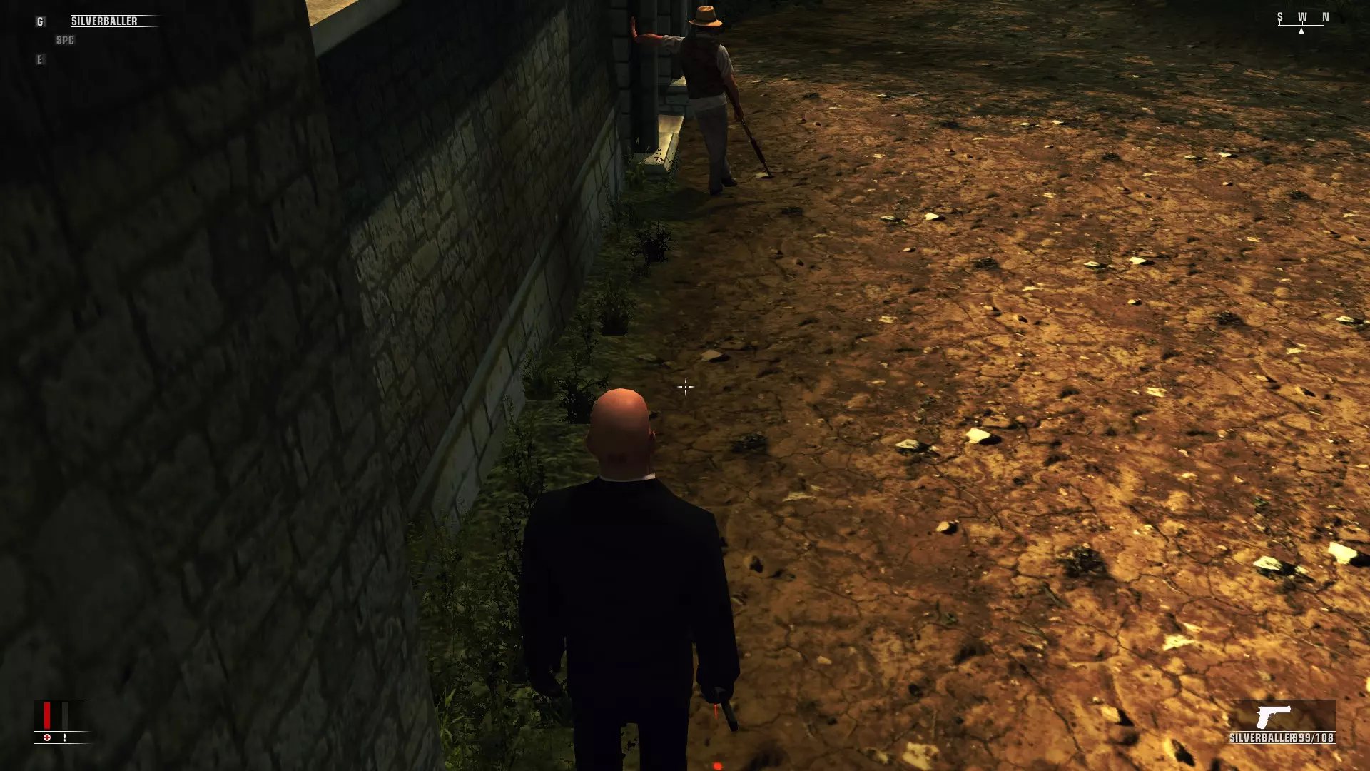 技巧、窍门及其他你想了解的内容 简介 本指南旨在解析游戏机制,提前了解这些机制能让游戏减少猜测成分,增添更多乐趣。 和任何指南或模组一样,其质量取决于所收到的反馈。如果你不告诉我需要添加、改进或修改某些内容,它就无法变得更好。我能接受尖锐的意见,只要在你的吐槽中包含有用的信息就行。 你的初次游玩 不要像我一样,每个任务都追求“沉默刺客”评价,不达目标就不进行下一个任务。至少先完整通关一次游戏后再尝试,因为一旦你掌握了“沉默刺客”玩法,关卡中所有值得探索的刺激元素都会被耗尽,从其他方式重玩关卡时就会显得索然无味。所以尽管开枪,大胆尝试就好,反正通关后你可以重玩所有关卡。 如果你不杀害平民,每次完成任务都会获得不错的奖励,这样你就能得到“足够”的钱来购买必需品。不过,一路枪战比潜行要难,这一点要记住。 设置 不管你多讨厌垂直同步,在这款游戏里都要开启它。 事实证明,关闭垂直同步会导致游戏物理 bug,还会破坏你开枪自救的能力。在第一个任务(不是教程)中有一条狭窄的通道,关闭垂直同步后你将无法挤过去。 另外,当47号特工濒死时,他的屏幕会变成红色。这正是获取三次爆头并复活的时机,但如果未开启垂直同步(V-Sync),游戏可能不会始终响应开火键,导致你错失射击机会并死亡。 你可以关闭垂直同步,但我觉得这款游戏的输入延迟并不严重,而且说实话,我反正也喜欢一路射击突围。 潜行 在《杀手:血钱》中,你经常需要绕到目标身后并在不被发现的情况下靠近。对于新玩家来说,最明显的方法是蹲在目标身后并向其移动。这在目标静止时没问题,但当目标移动时就不行了。事实证明,47号的爬行速度比人走路还慢,这使得很难绕到移动目标身后并用注射器将其镇静。你可以尝试从背后快速接近,希望在你行动前他们不会转身。或者,如果你在不蹲下的情况下跟踪目标,目标会注意到你并转身看你,这没什么大不了,只是有点烦人。以我的经验,这会让事情充满不确定性,而我不喜欢在这种情况下依赖运气。 绕过这些不确定性的一个简单但合理的方法是保持静止。如果你提前知道目标会出现在哪里,你可以站在一个能位于目标背后的位置。观看下方视频获取示例。 该视频展示了三种悄悄接近并麻醉或杀死目标的方法。