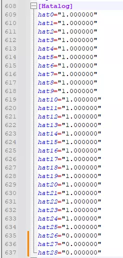 独特帽子 在此文件中需找到三个条目:hat26、hat27、hat28,并将小数点前的0改为1(结果应为1.000000)。