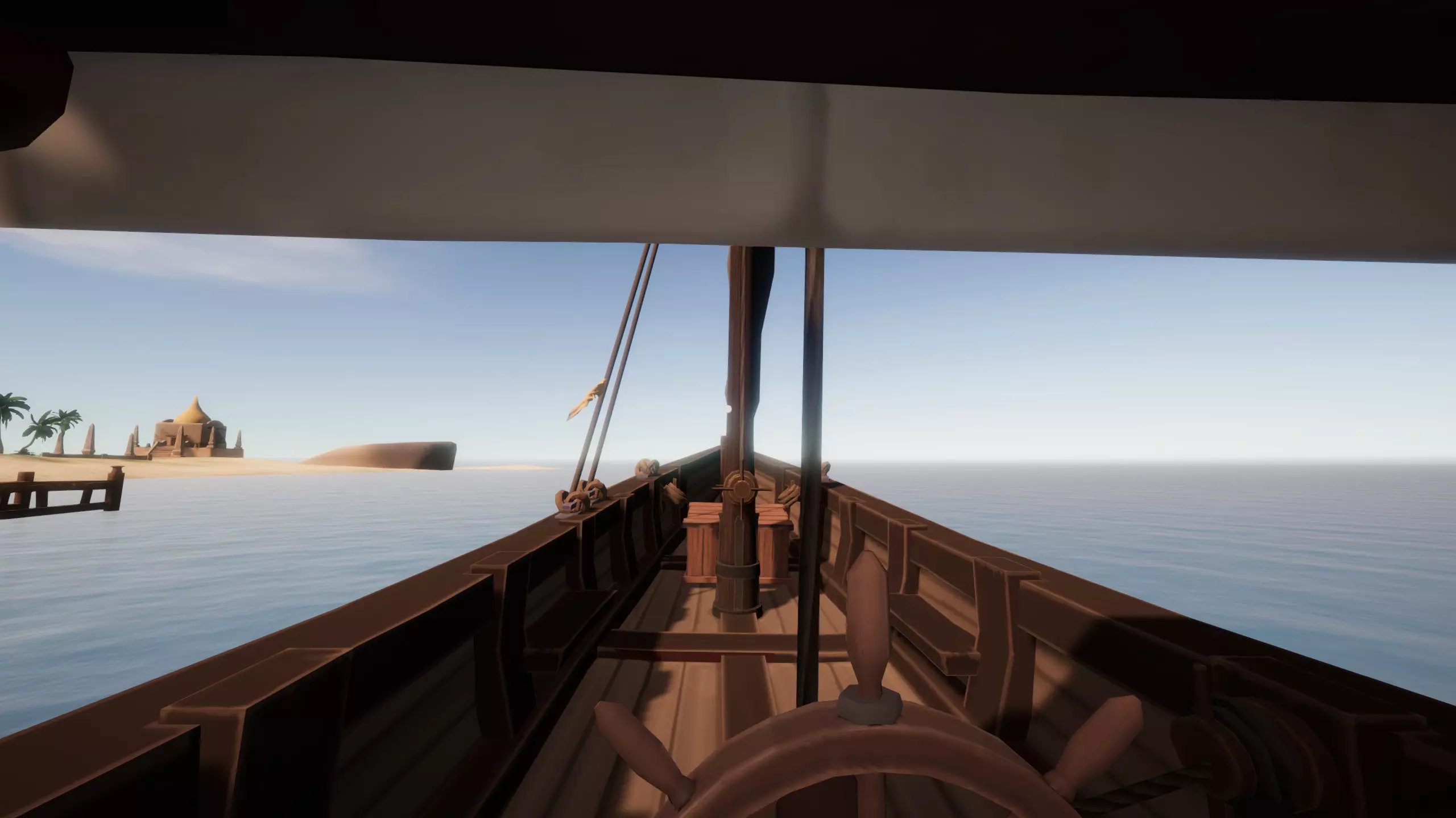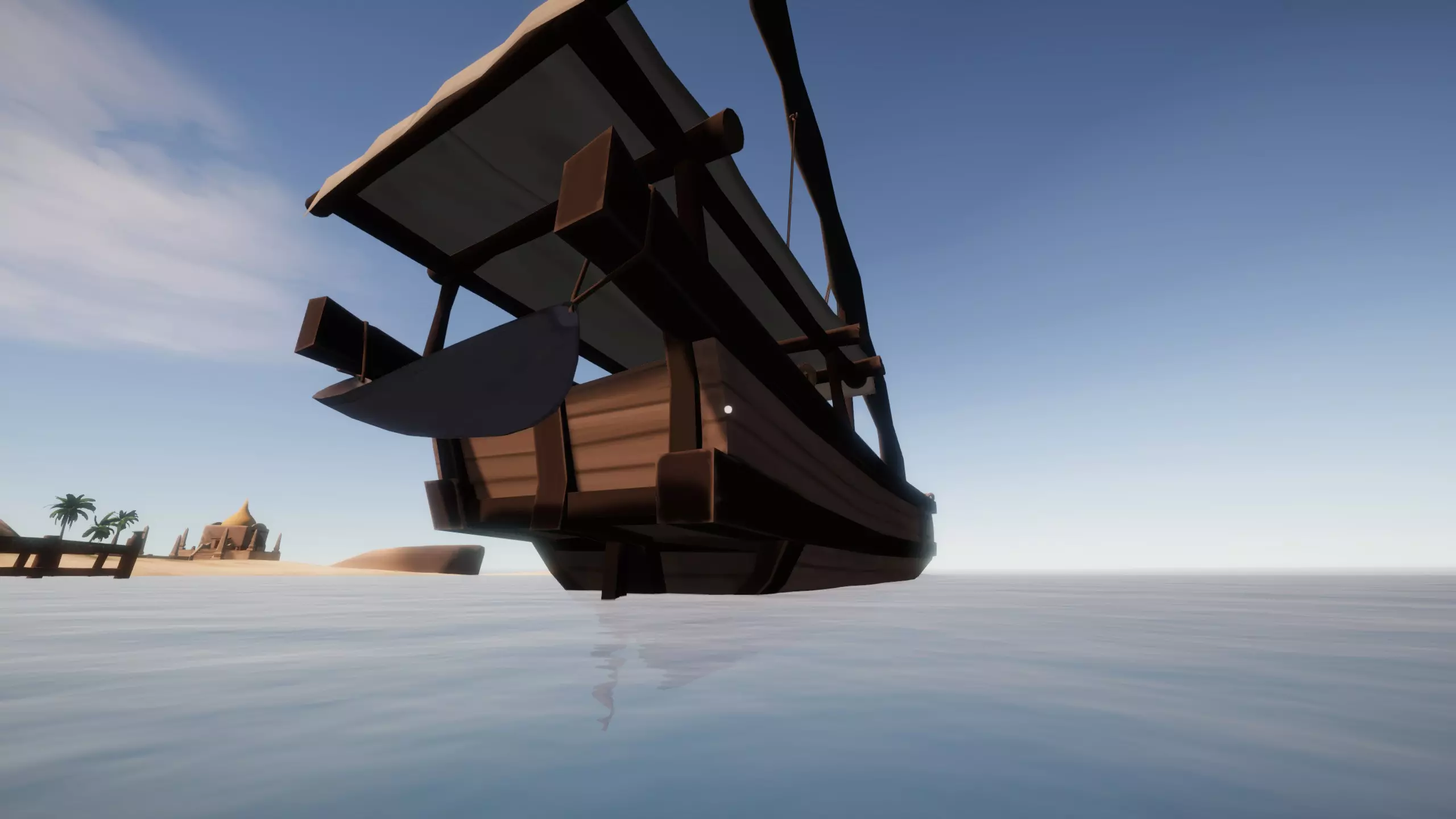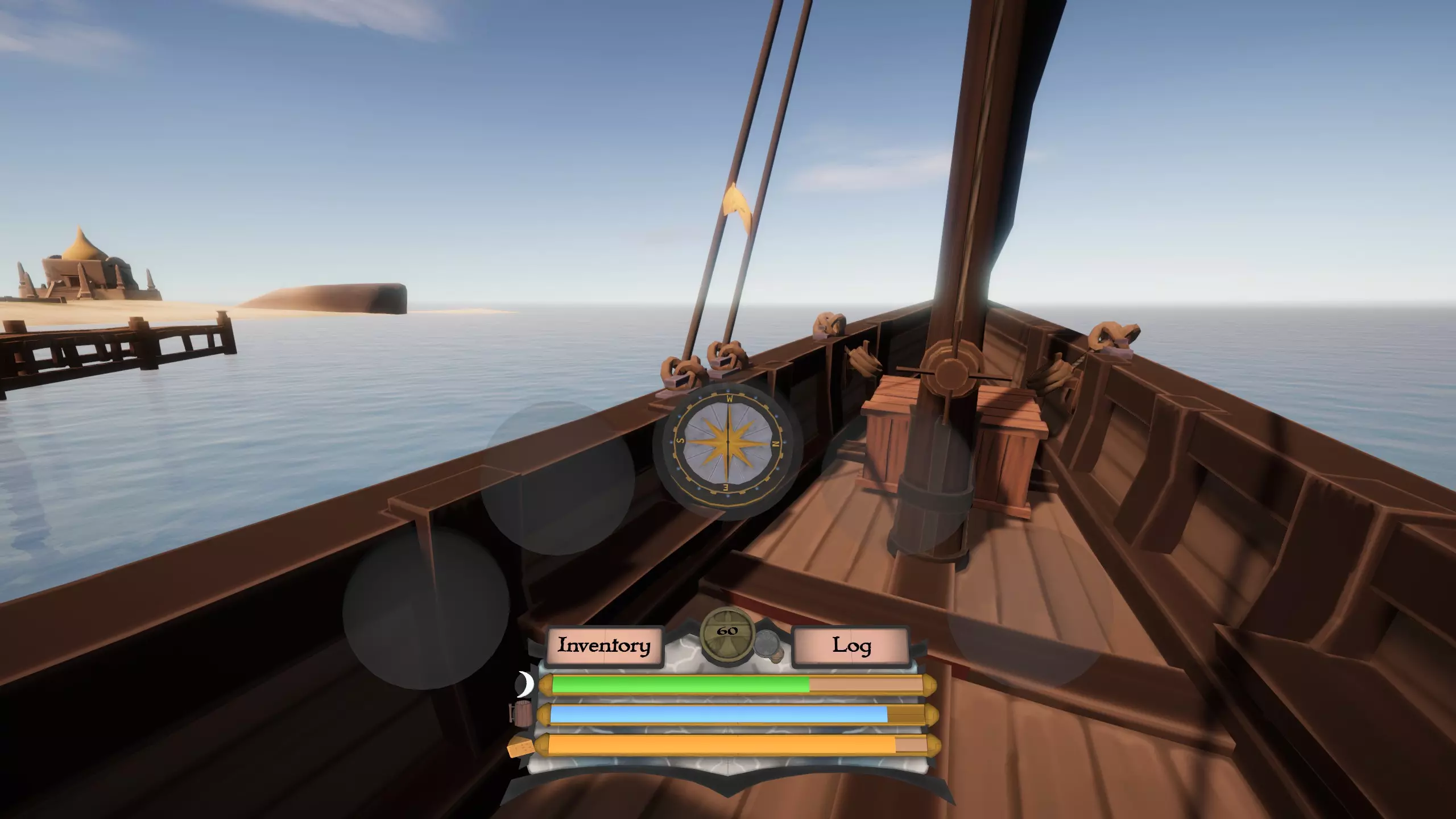 首先升起你的一张或多张船帆。这样一来,一旦你让船脱离搁浅状态,就能轻松回到船上(虽然在这类游戏中船不太可能跑得比你快,但小心驶得万年船)。