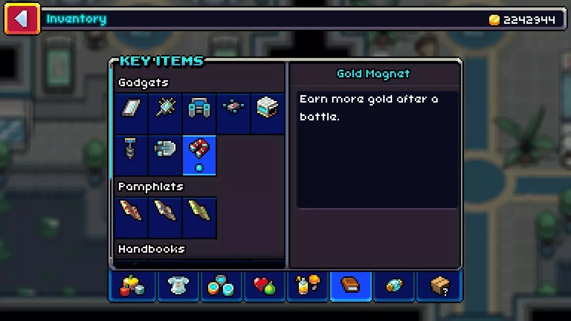 磁力帽在击败训练家后能额外吸引20%的金币。此效果对野生克洛蒙无效,除非对方克洛蒙使用了抢钱技能。 获取方式:完成【小电蜂快递】任务后可获得该道具。 【小电蜂快递】是一个在多纳尔岛的小电蜂实验室接取并完成的任务,可通过与约瑟夫对话接取。 黄金磁铁(关键道具:装备)