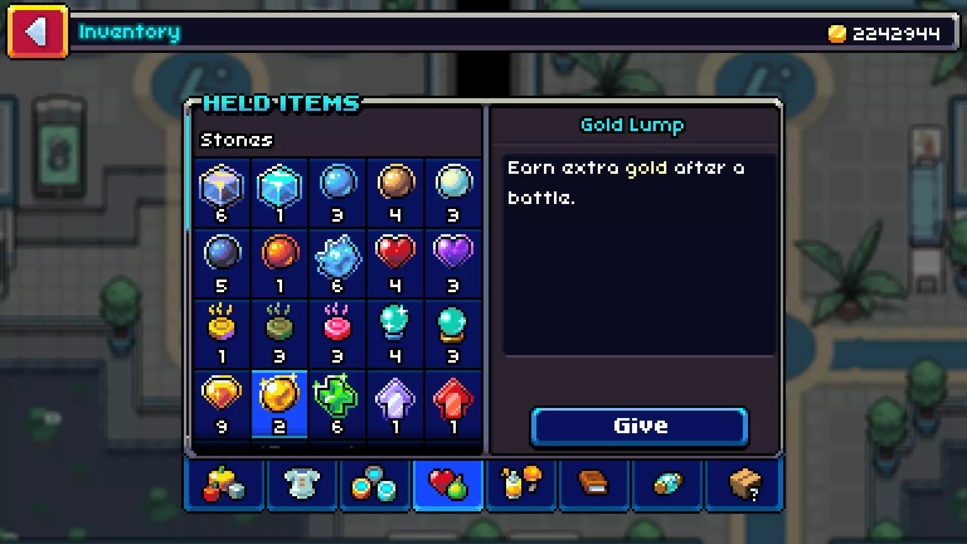 获取方式: 1. 解锁第29级研究等级(里程碑)后可领取。 2. 可从弗拉玛地区露西家的下层挖掘获得。 备注:【金块】是一种携带物品,能使战斗中获得的金币翻倍,包括通过【金币掠夺】技能获得的金币。即使携带该物品的科隆没有参与战斗,此效果依然适用。 【金币掠夺】(技能):从对方训练家那里窃取金币,最多3次。 科隆:此特性存在于【莫夫尔】和【西尔奎尔】的进化链中。西尔奎尔和莫夫尔首次可分别在光辉公园和海维尔捕获。莫菲尔在7级时习得该技能。银羽雀在9级时习得。 注意:无论哪只科隆兽使用该技能,每场战斗最多只能使用三次。 此技能对野生科隆兽无效。 “抢夺”的金币数量取决于队伍中具有“强盗”特性的科隆兽的有无及数量。 拥有6只具有“强盗++”特性的科隆兽将使 stolen 的金币数量最大化。但我不推荐这么做。 我建议你选择银羽雀而非莫菲尔: 银羽雀同样拥有“强盗”特性。 由于其更高的防御和特防,它在使用“金币抢夺”技能的3回合内有更高的生存几率。 银羽雀的速度也更快。基于上述原因,我建议将西尔奎尔进化为吉尔温,并让它携带强化宝石。 【强盗】(被动特性)