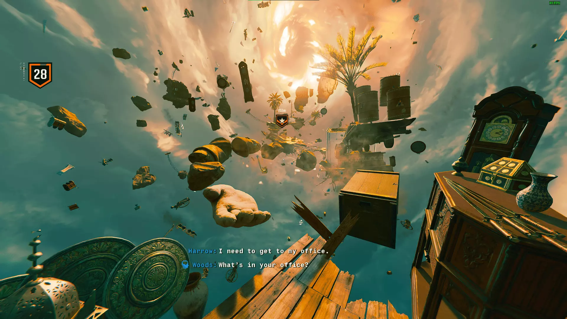 我的最佳建议是提前行动,在计时器开始前就通过 sprint jump( sprint 跳跃)穿过平台。面对需要跳过的桶房间,先蹲下,然后从最后的桶下方爬过去。你不需要拾取武器,只需在之后的岛屿上拿到抓钩。接着无视所有敌人,滑翔至门口即可。我当时还剩6秒,所以这应该很容易做到。进入办公室后,卡片就会触发。