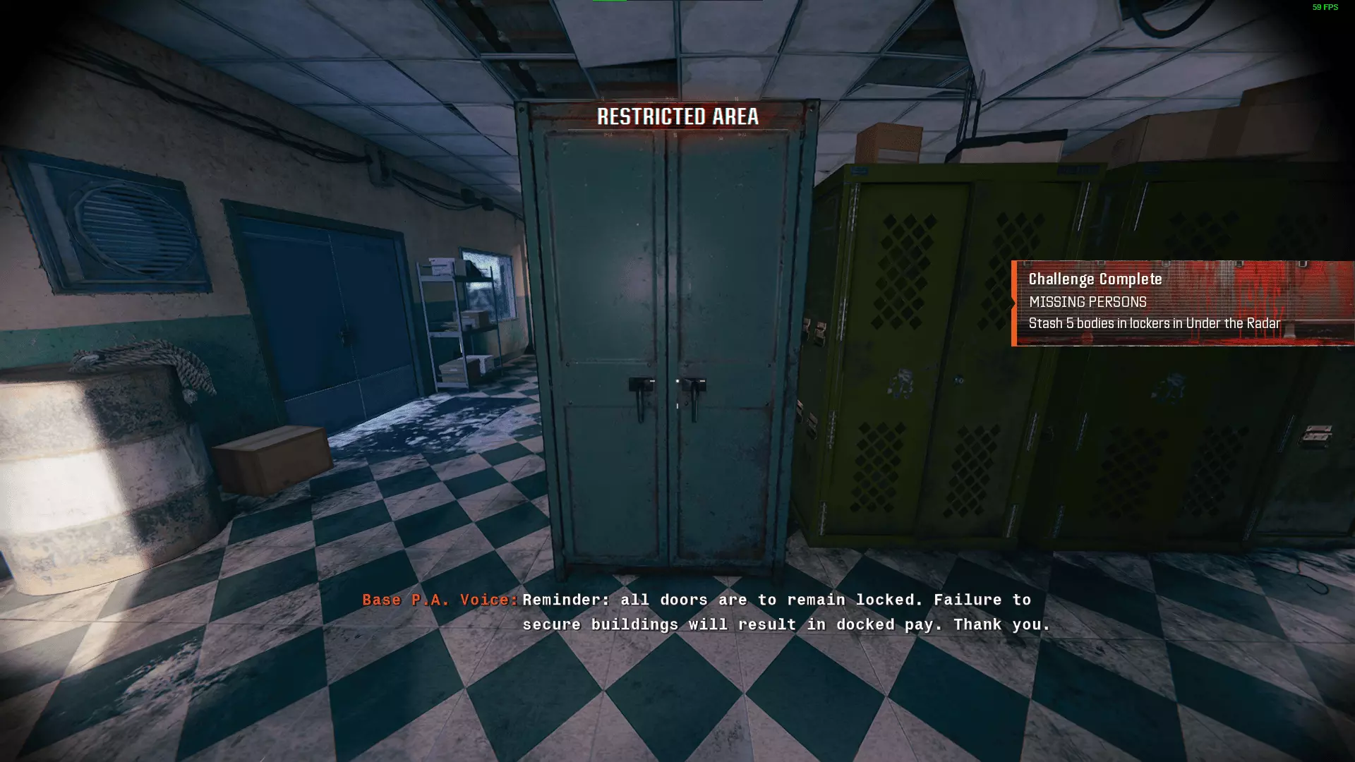 失踪人口 - 黑色行动 在“秘密行动”任务中,将5具尸体藏入储物柜。 你首次可以执行此操作的时机实际上是在任务开始时。穿上守卫的衣服,然后把他扔进储物柜。现在留意这些储物柜,你可以随时使用它们,但每次只能容纳一个人。这个名片其实难度不大,因为仅在“破坏弹头”区域就有4个储物柜。