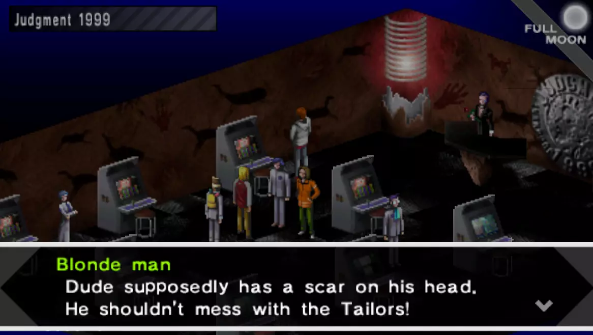 5. 接下来前往同一商场内的【审判1999赌场】。在赌场里与金发男子(如下图所示)对话,他会提到一个头上有疤的男人。