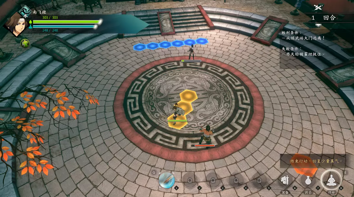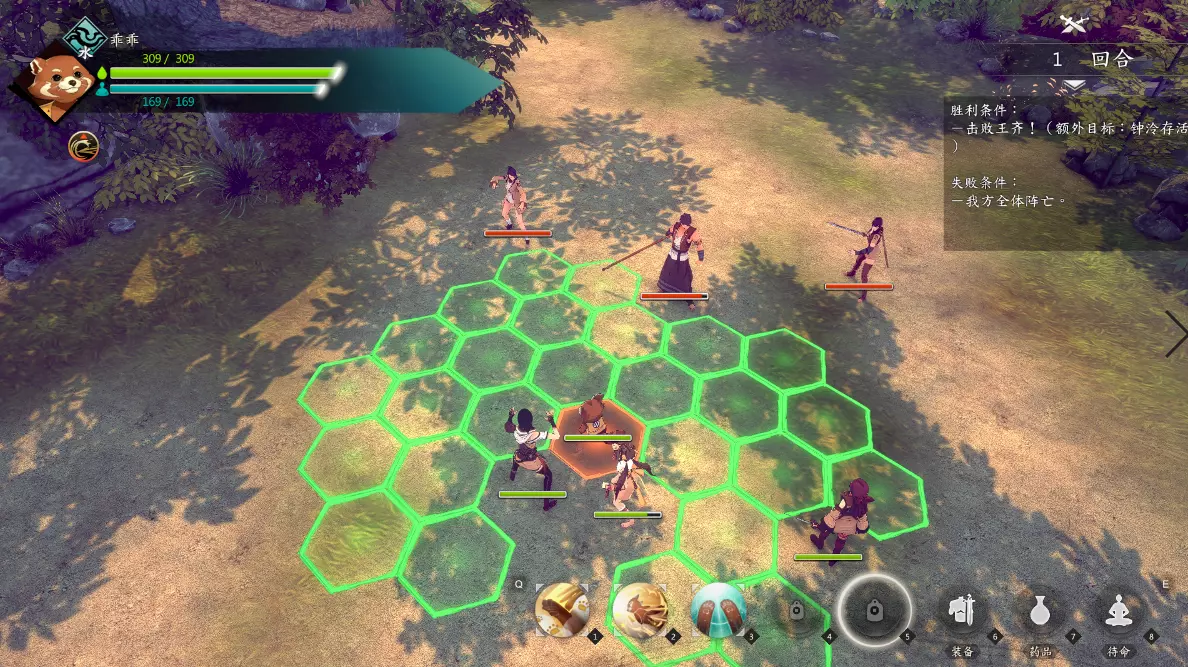 调查河边草丛获得湖笔 调查路旁草丛获得活血散(贴边会看不到) 以多欺少可非君子作风:胆识+2【90 6 38 56】 我不会屈服,想打便上:胆识+2【92 6 38 56】 战斗胜利:生肌膏,金钱+112 过关要点:目标是不用药血蓝尽可能多过关。这里给出前三回合无暴击招架闪避完美开局走位。 第一回合:如图站位,段红儿去右上使用飞来不见人打王齐,王齐附加断筋无法移动,钟若昕在上方叫出乖乖,乖乖治疗钟若昕。敌人本回合只能往前走打不到我们。