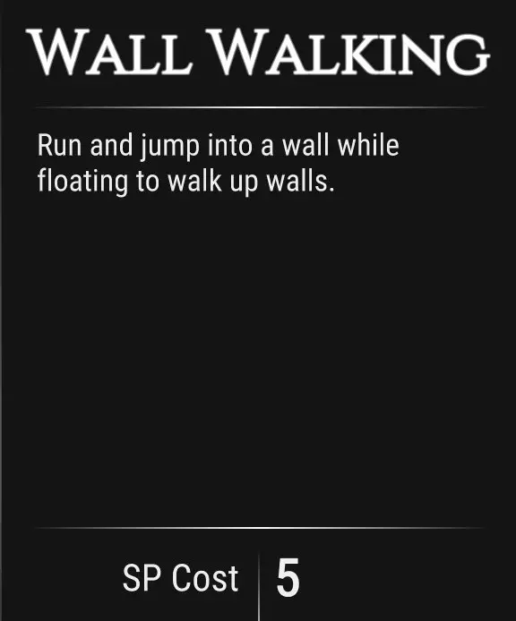 使用此技能借助固定墙壁可实现持久悬浮于地面之上。 忽略地形障碍。 技能消耗4点。 更轻的负载