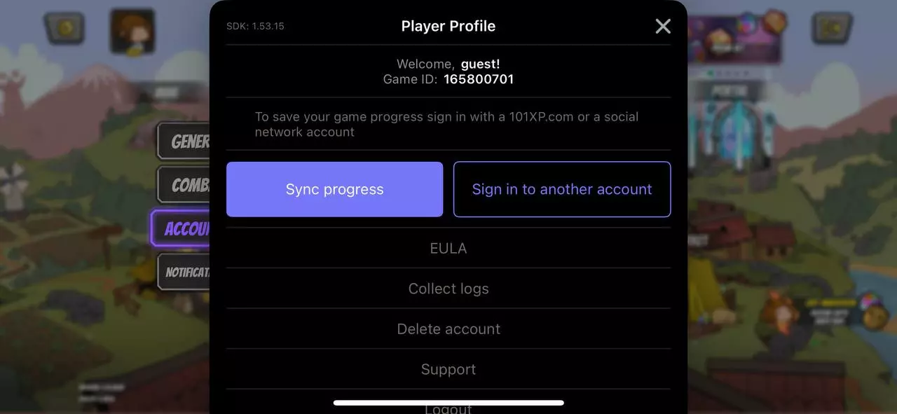 在这里,你会看到两个选项——让我们分别解释一下。 1.【同步进度】指的是保存当前的“新”账户。此选项适用于新玩家。 2.【登录其他账户】是你需要从桌面(PC)版转移进度时的选择。