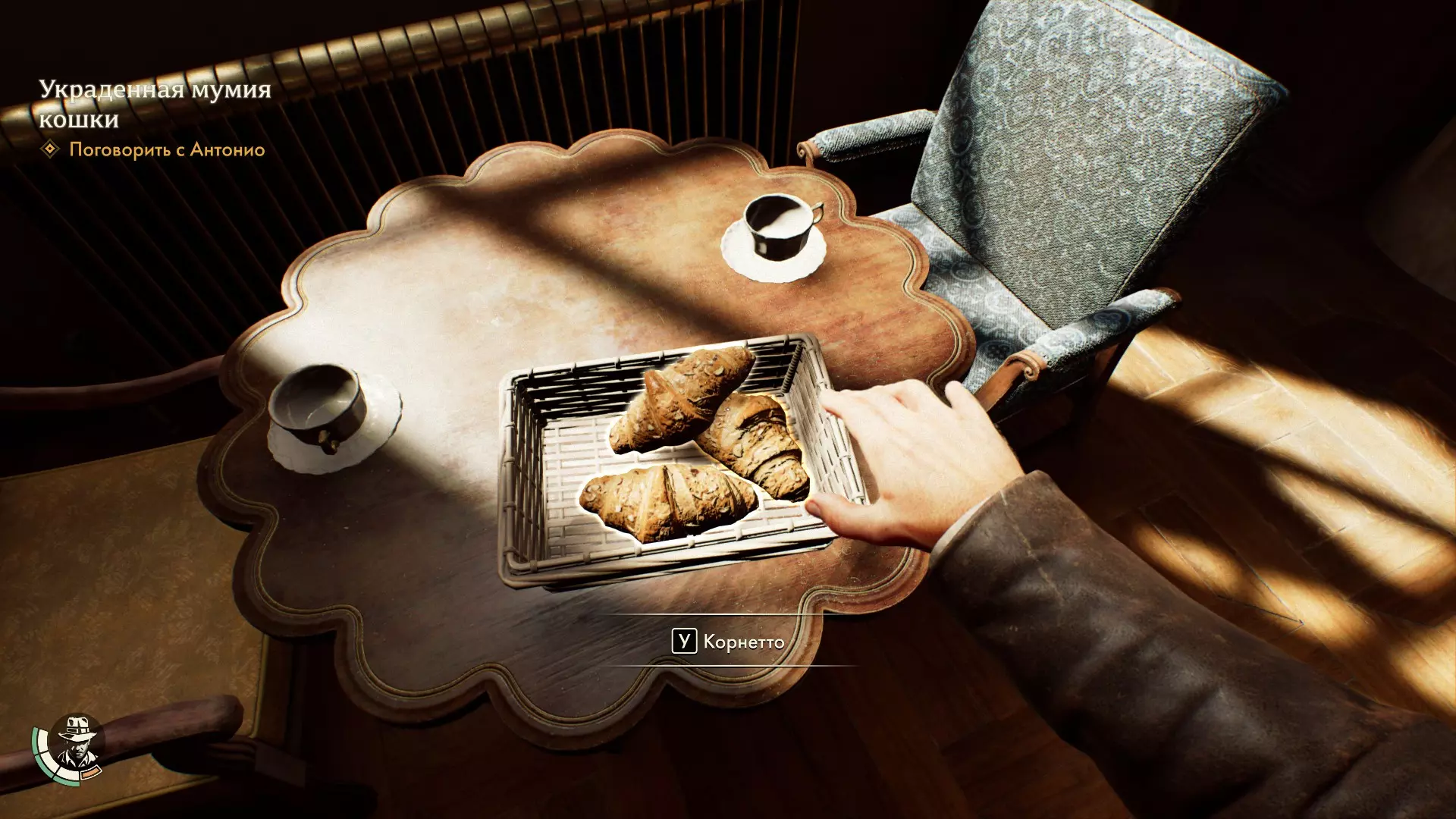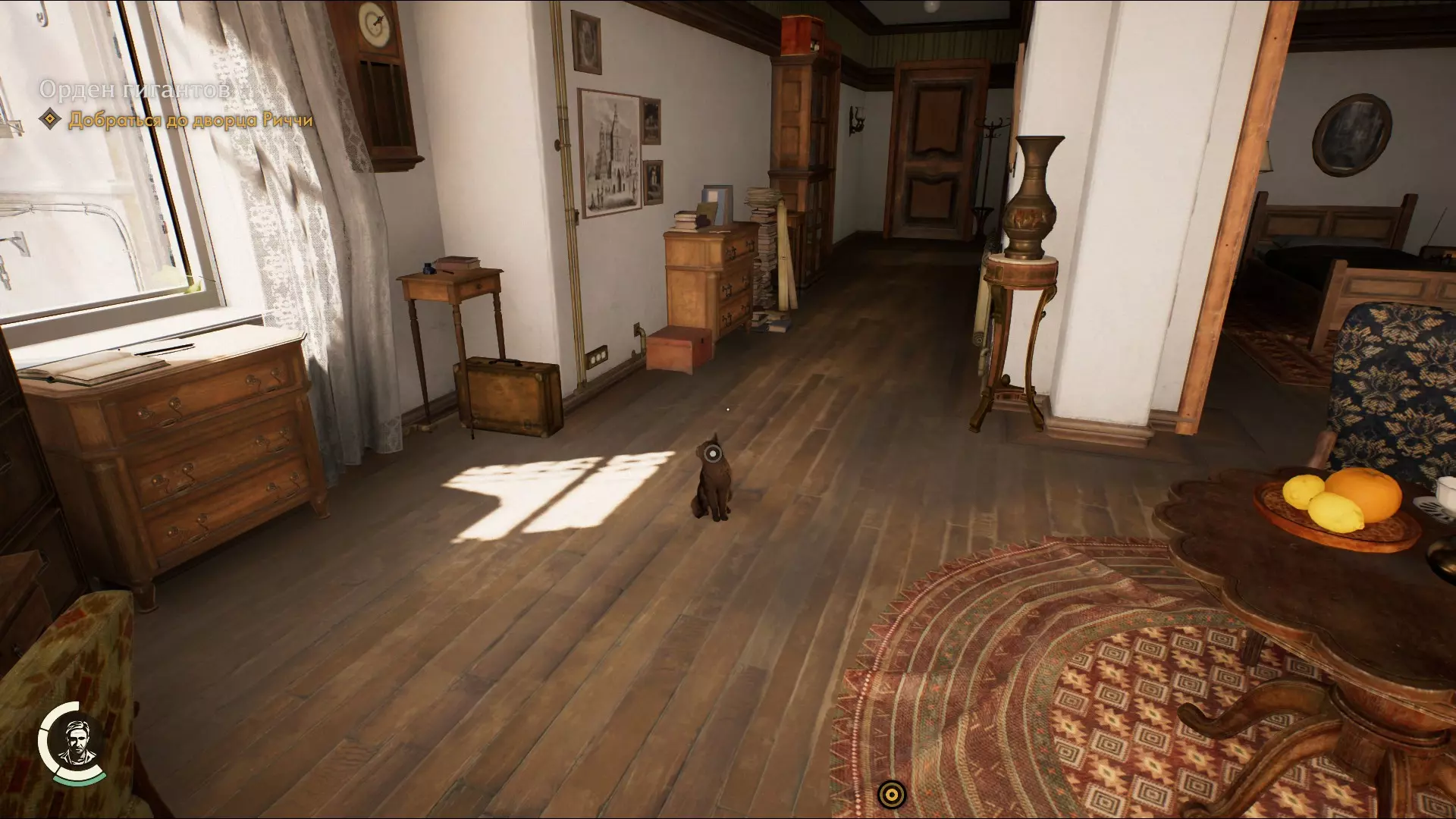 抚摸猫咪 在罗马的朱莉娅大街上抚摸猫咪。 当你来到罗马街头,需要前往里奇先生的宫殿。进入宫殿有两种方式——通过正门,或者穿过小巷,爬上脚手架,顺着绳子下到花园。 要找到猫咪,沿着小巷走到脚手架处,爬上去并找到阳台的敞开大门,通过它可以进入公寓。猫咪就在那里等你。