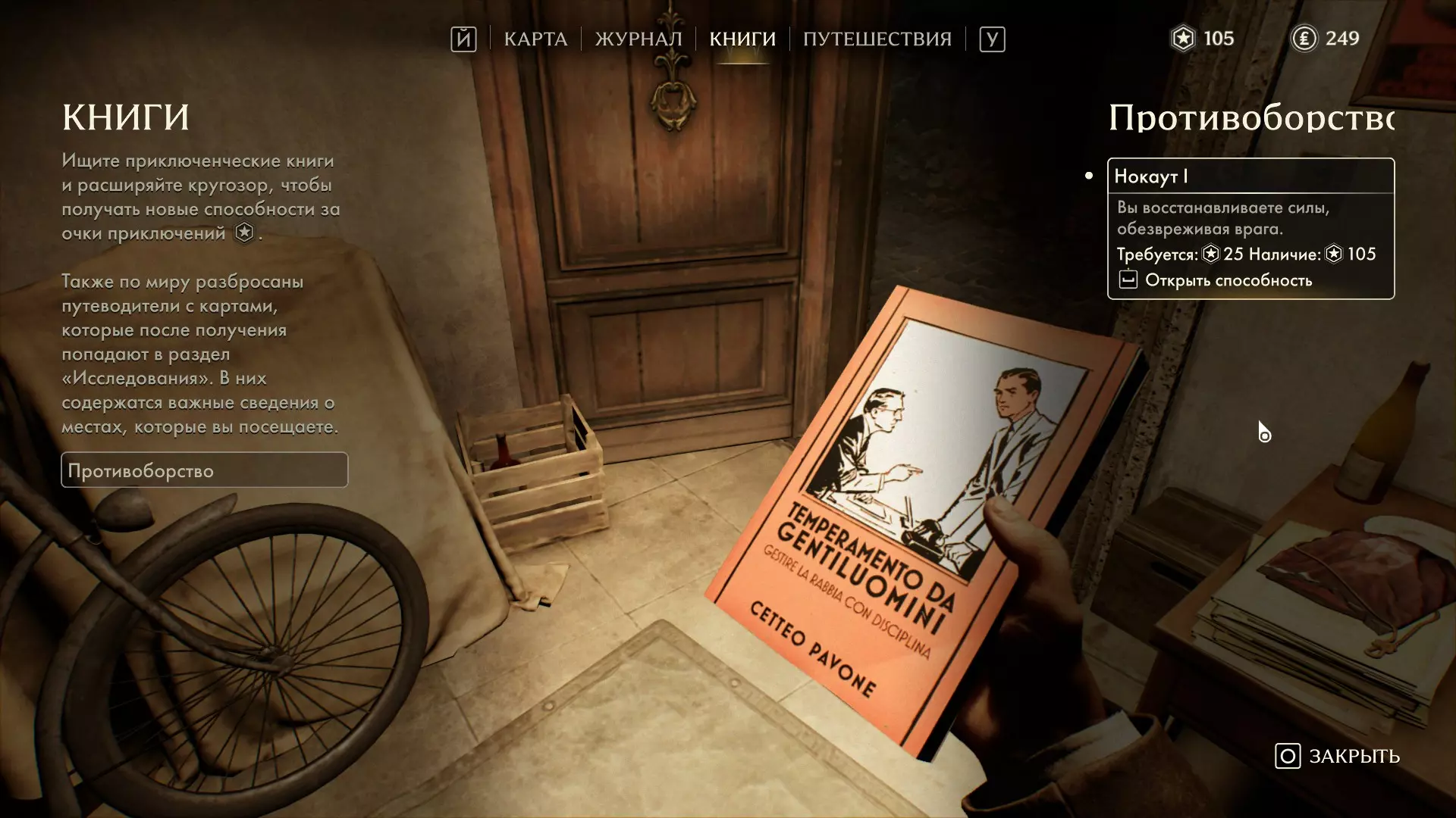 力量之书 获取所有能力,需在罗马阅读冒险书籍。 第一本书【灵魂食粮】位于皮乌斯四世别墅的保险箱内,完成【集会厅之谜】即可获得。该谜题在拾取【独立评估】笔记后解锁。 保险箱密码为1222。 第二本书【维生素】与需要抚摸的猫在同一间公寓里。