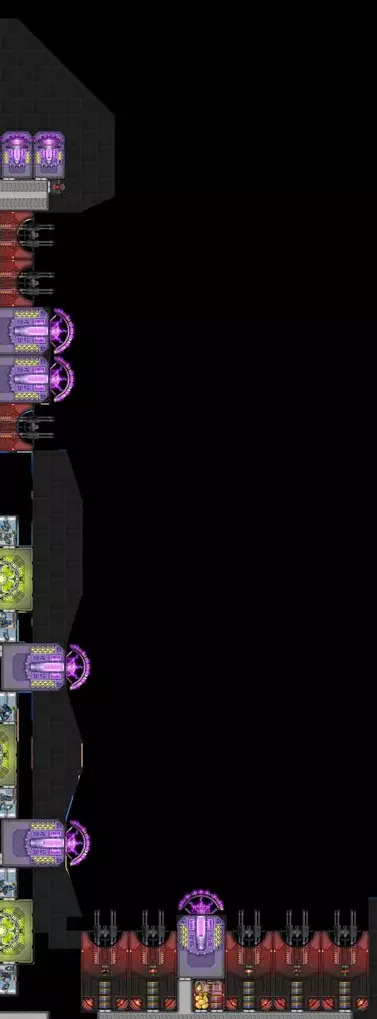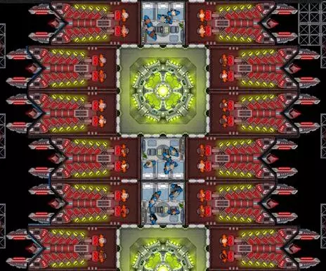 Reddit用户“crunxzu”指出,离子光束若距离大型反应堆超过几个格子,无论分配多少船员或走道设置多么合理,都会损失功率。我已改用类似的布局,确保离子光束发射器与大型反应堆之间的距离不超过2个走廊格子。这种布局成本高昂,理论上所需的反应堆数量远超“必要”,但实际上这是唯一能让离子光束持续发射且中断最少的方法。这要求船员 bunk 必须紧邻大型反应堆,在我的飞船上,只要离子光束发射器离反应堆足够近,6名“电力供应员”船员就能为4个离子光束供能(不包括每个发射器中的2名操作员)。