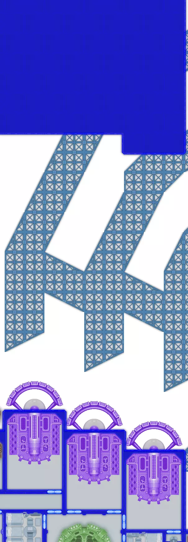 2. 厚装甲墙,位于空旷空间/天花板前方,由大型护盾墙提供支撑。