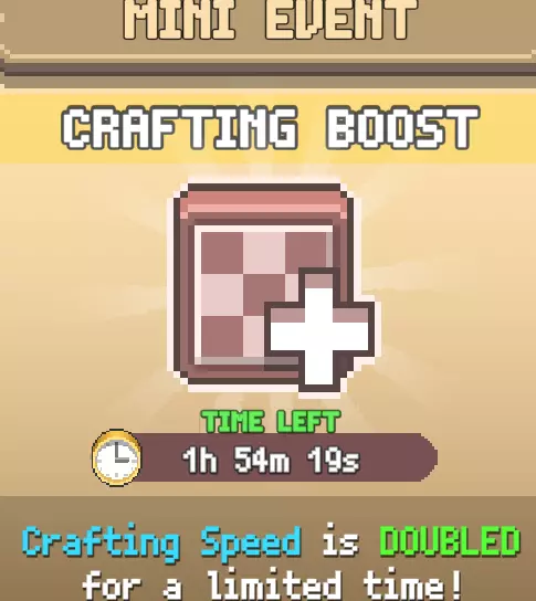 这些每周出现一次,持续24小时的增益效果会以某种方式为你带来益处。 缩短一半制作时间 能量恢复速度翻倍 获得的经验值翻倍 当你需要大量低阶物品(例如金币和经验值储存器或低阶工具)时,一定要利用好缩短制作时间的增益。经验值翻倍的增益在地下城很有帮助,能让你更快解锁地块。能量恢复速度翻倍的增益相对不那么实用,因为你通常不会长时间在线,或者登录频率不够高,难以充分利用它。 铁砧