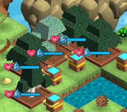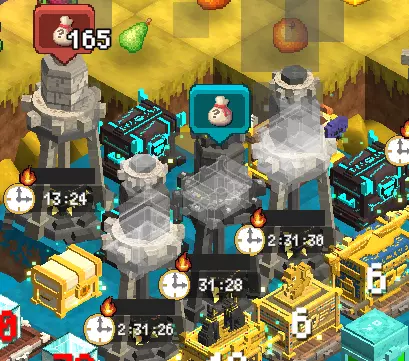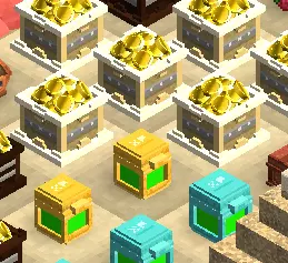 你可以制作经验容器和金币容器,这些容器能提升你的最大存储容量。这些不同等级的容器需要对应等级的资源,游戏中共有四个等级的容器。 存在强盗和其他事物,它们会要求一定数量的金币和经验来解锁新区域。 如果存在锁定的地图区块,存储计数器将不会增加,多余的经验或金币会被浪费。 限时活动增益