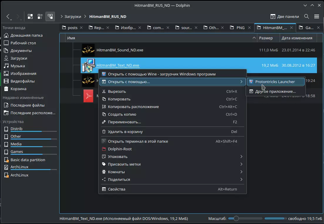 现在进入下载文件夹/HitmanBM_RUS_ND/,打开终端并依次粘贴以下命令,三个安装程序会自动填写Steam游戏文件夹路径,若游戏安装在其他位置,请手动指定。 文本汉化 protontricks-launch --appid 6860 HitmanBM_Text_ND.exe 声音汉化 protontricks-launch --appid 6860 HitmanBM_Sound_ND.exe 视频汉化 protontricks-launch --appid 6860 HitmanBM_Video_ND.此安装方法也可在资源管理器中完成,右键点击安装程序,在上下文菜单中选择Protontricks启动器,然后选择【杀手:血钱】的前缀,安装程序就会出现。