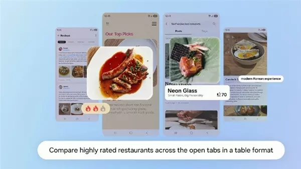 此外, 三星还介绍新的AI功能,可以帮用户在浏览内容的同时完成更多任务。 三星Galaxy AI会收集所有标签页中的调查结果,甚至包括用户的近期浏览记录。 随后,AI再结合对话式的智能分析,为用户解答所有问题。