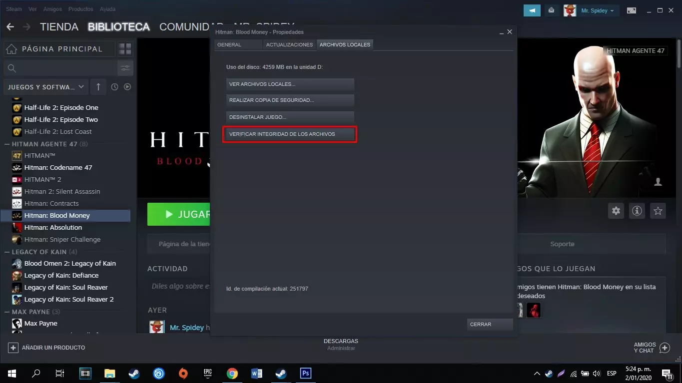 欢迎来到《杀手:血钱》的西班牙西班牙语翻译 在2019年Steam圣诞促销期间,我(oknoxd)不得不购买了一个《杀手:代号47》的捆绑包,它比预期的要便宜,但并没有完全达到我的期望。绝大多数游戏(甚至可以说所有游戏)都只有原始语言(英语)版本,这不仅让我难以快速理解游戏中的剧情,也影响了对游戏进度的把握。因此,我努力将必要的文件上传到相关服务器,希望能帮助所有需要游戏西班牙语配音的人。 更新:应用此补丁后,游戏存档(saves)将不会被保存,所以请大家注意。游戏的安装、缓存验证及备份 游戏安装 大家应该都知道怎么安装游戏啦。 游戏缓存验证 安装任何游戏后都很重要的一步,它有优点也有缺点。 优点:可以帮你找回不小心删除的文件,Steam会自动检测缺失的文件并重新下载。魂斗罗:一旦修改了游戏文件或数据(无论是添加模组还是安装其他各种东西),Steam会检测到该游戏缺少原始数据,并会命令程序本身下载“缺失”的文件,这会导致模组、翻译等内容失效。但是,如果我们不进行游戏缓存验证,这种情况就不会发生。 注意:点击图片可以放大。