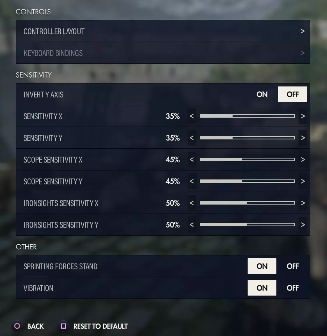 在游戏中,你会发现操控手感立即变得更好,但现在灵敏度可能过高。 进入【游戏选项】>【控制】,将【X轴与Y轴灵敏度】数值调低。例如,我现在将其设为35%。