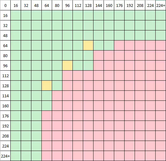 步骤2a. 调整大小与裁剪。 现在你已经制作好了基础的阿尔法遮罩,需要了解一些关于GoldSource引擎如何接受玩家贴花的数学知识。WAD文件(半条命或雷神之锤)的基本限制要求其尺寸必须是16像素的偶数倍数。玩家贴花或pldecal.wad的次要限制是文件大小需低于特定数值。虽然传言该大小约为15kb,但通常稍大一些的文件也能正常使用。更可靠的确定尺寸的方法是使用“可接受尺寸表”,如下方我制作的表格所示。
