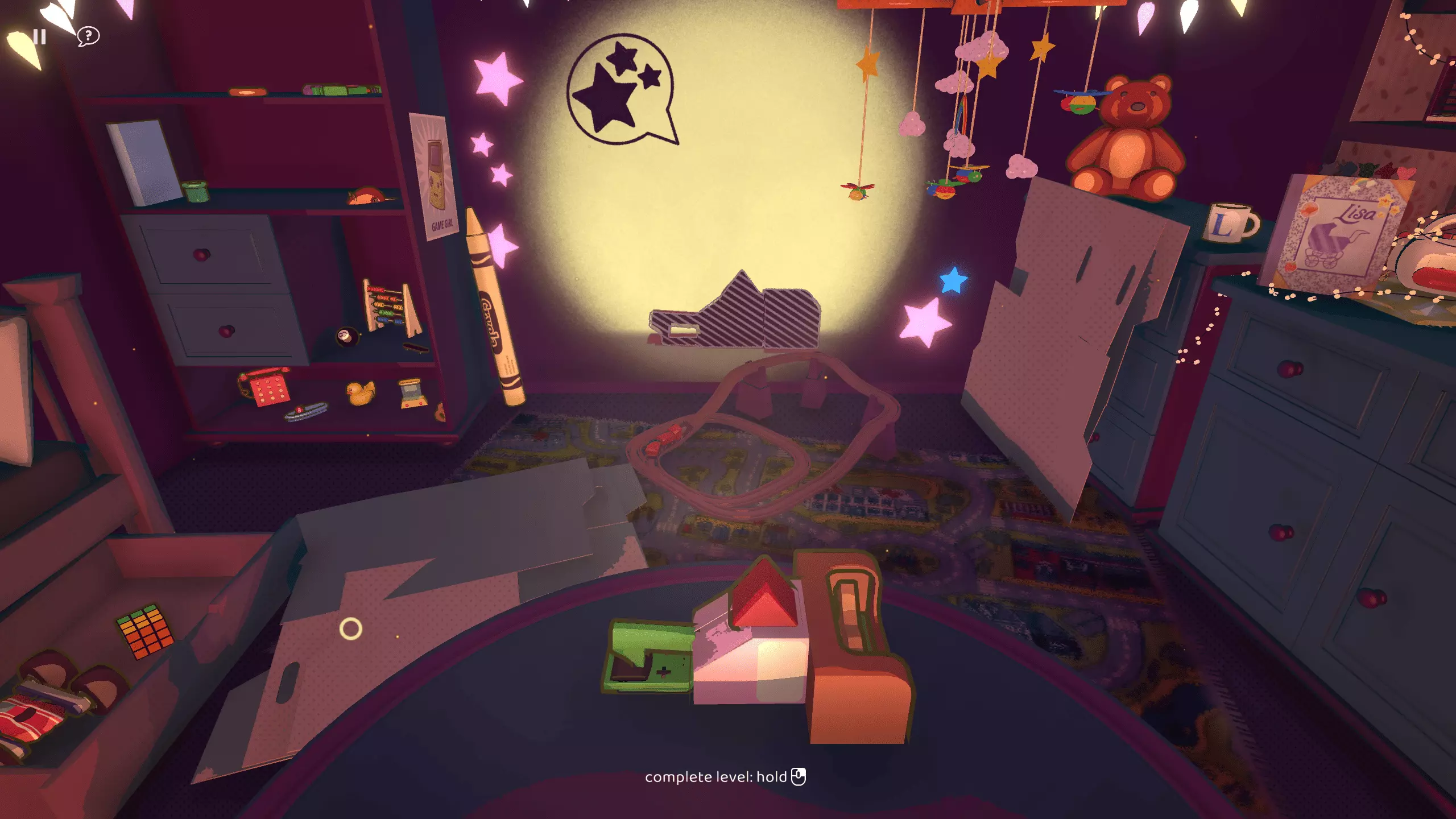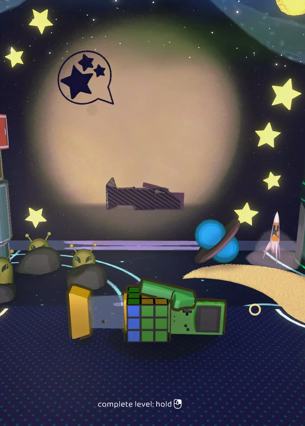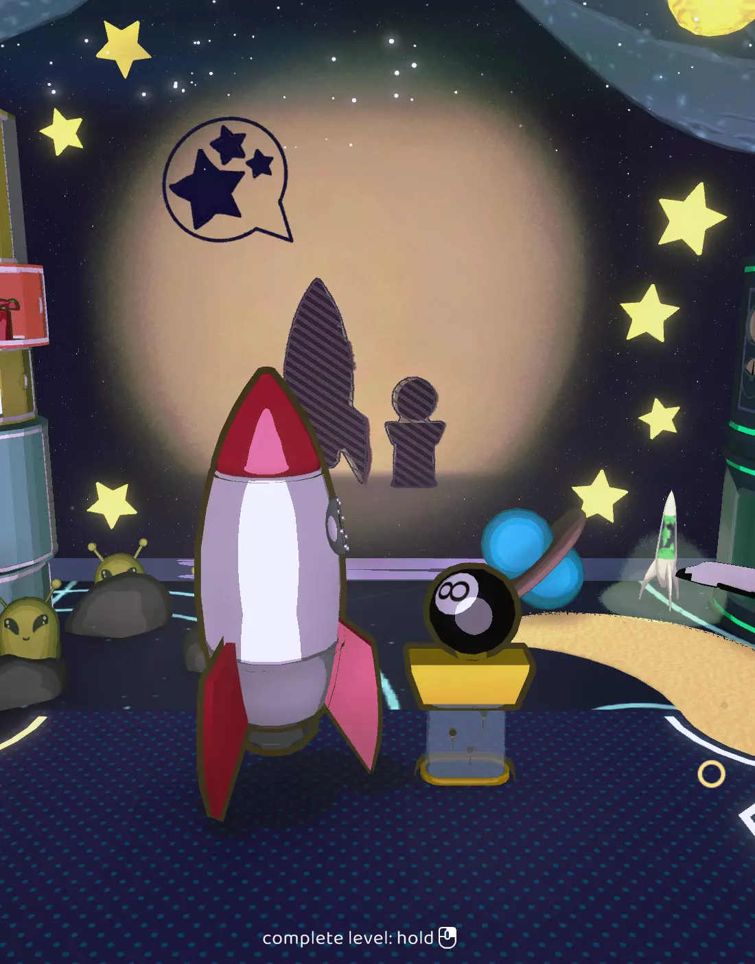 在这一关卡中,首次出现了【蠕虫毛绒玩具】。它体型过大,无法适配任何设计方案,但你必须使用它一次才能解锁【Useful?】成就。你无需尝试获取三星,只需转动它并将其与其他玩具组合,直到获得至少一颗星即可。火箭1