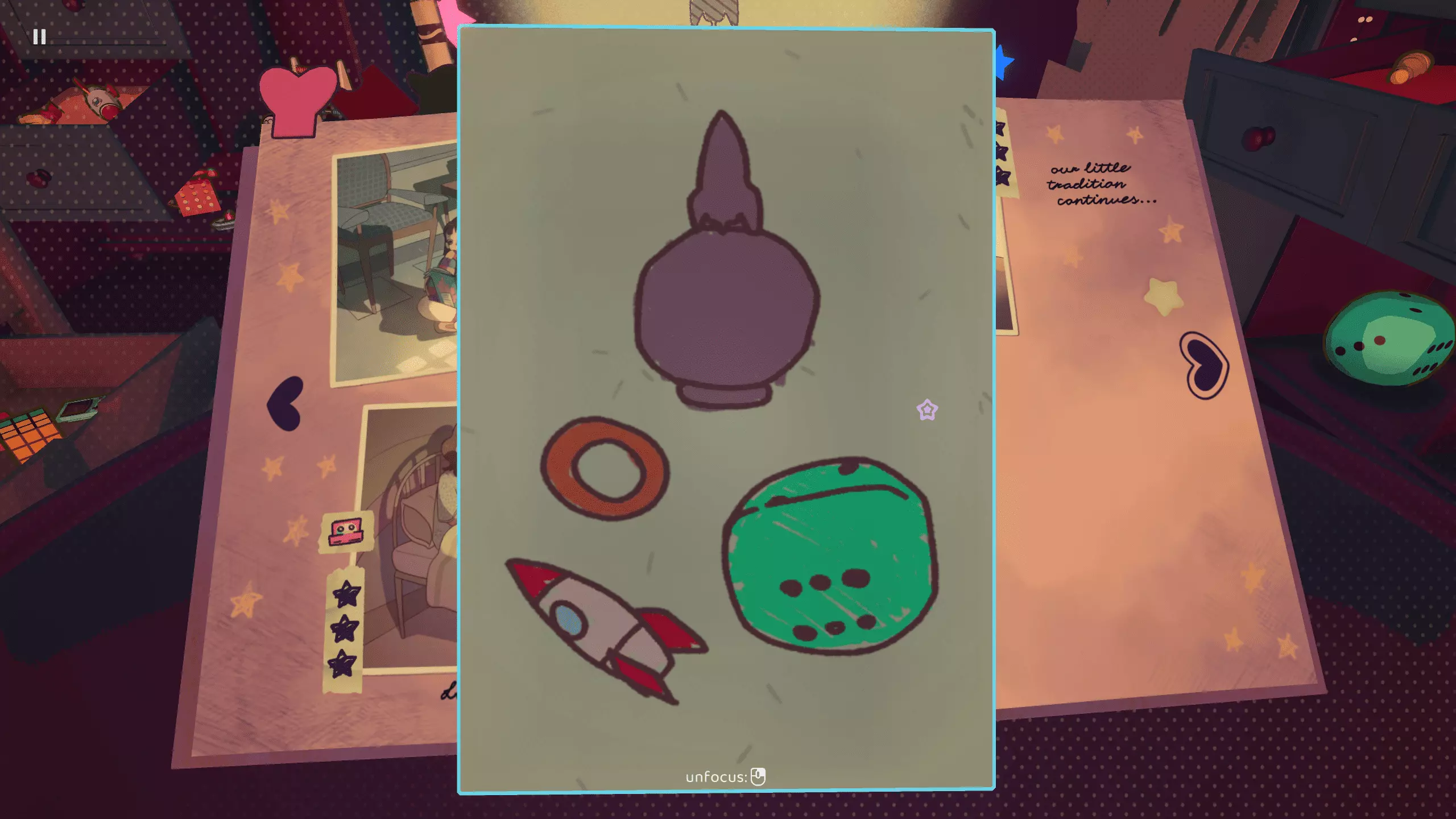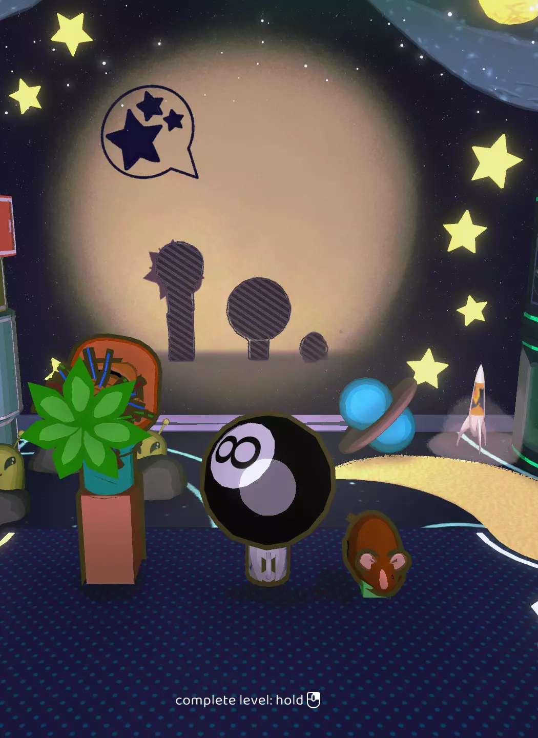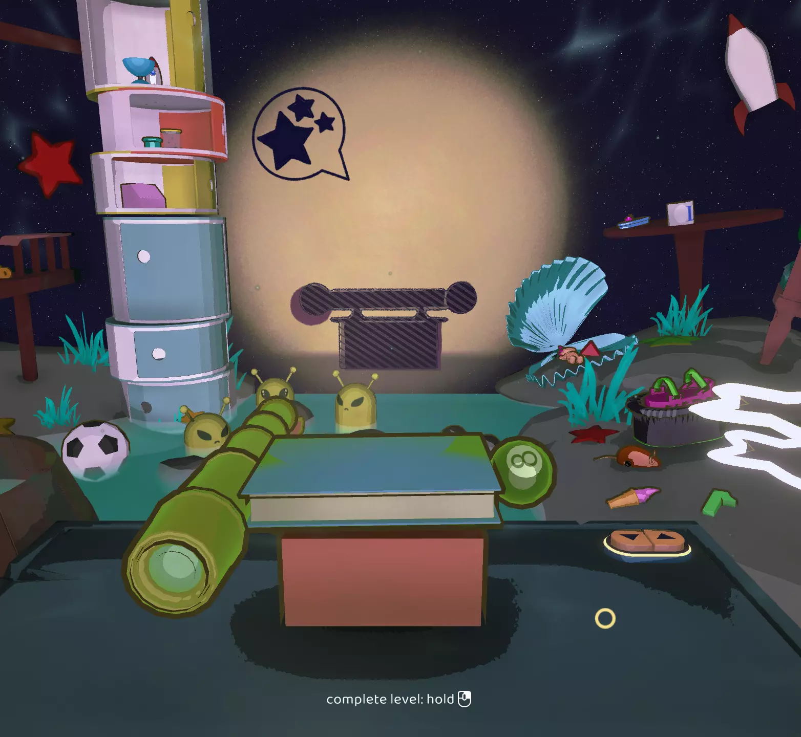 在这一关卡中,首次出现了【蠕虫毛绒玩具】。它体型过大,无法适配任何设计方案,但你必须使用它一次才能解锁【Useful?】成就。你无需尝试获取三星,只需转动它并将其与其他玩具组合,直到获得至少一颗星即可。火箭1