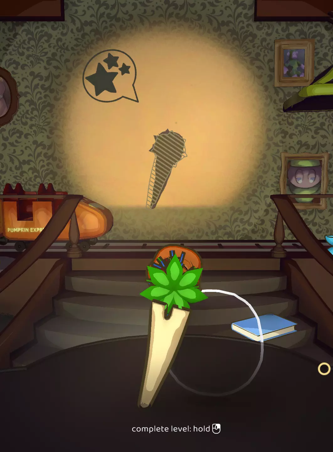 如果上述方案未使用木质玩具盒,那么这是为了向你展示【Too Scared】成就的达成方法。要完成此成就,你需要在丢弃幽灵的同时仍获得3颗星。花束