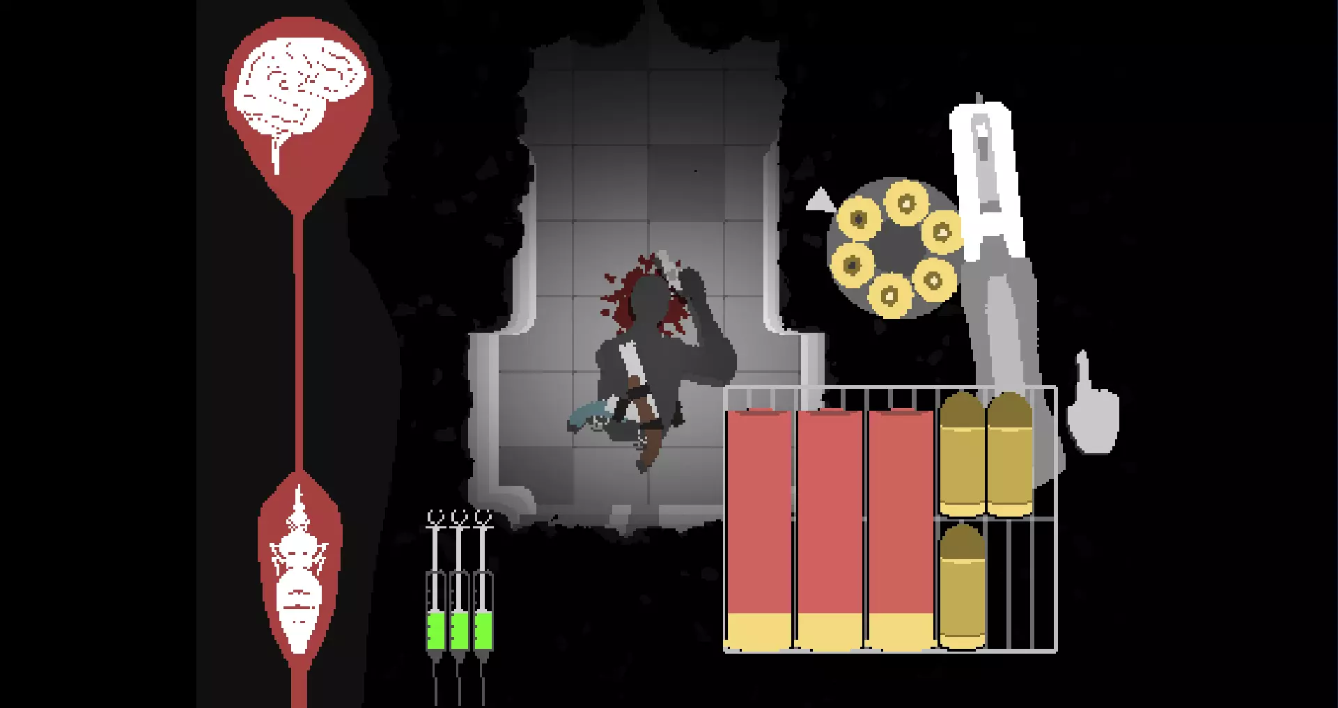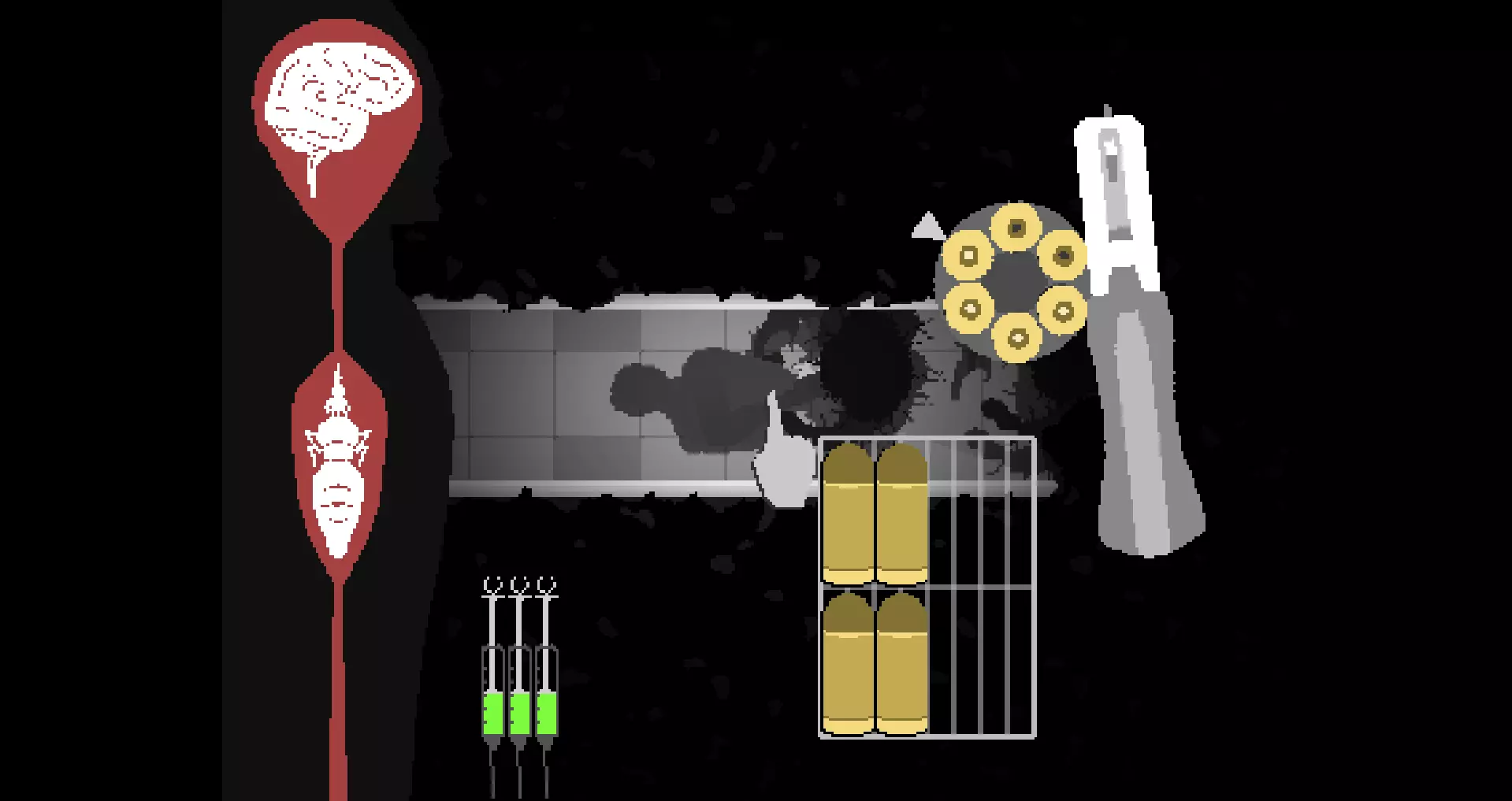 图1:我发誓我再开一枪就能搞定! 左轮手枪是你获得的第一把武器,但它比大多数其他武器都要复杂。让我们来为你梳理两个技巧,帮助你掌握这把枪,并可能攻克那个棘手的走廊关卡。 免责声明: 请注意,本简短指南不能保证你能在困难难度下通过走廊关卡。其目的仅在于帮助你提高左轮手枪的使用熟练度,从而增加成功的几率。 左轮手枪机制: 以下有些概念你可能已经知道,有些可能是新的。或者你可能全都知道。无论如何,这些概念都将作为后续章节应用的基础: 1.1. 空弹壳无需拖放即可从左轮手枪弹膛中移除,只需点击它们即可移除。 2. 变异科学家需要4发子弹才能杀死;变异实验室老鼠需要1发。 3. 左轮手枪只会发射弹膛中剩余的实弹数量(截至发布当天准确)。 3a. 若左轮手枪弹巢中混合了实弹和空弹壳,在空弹壳位置合上弹巢将不会发射子弹,至少要等到弹巢旋转到实弹位置才行。我认为这是设计良好的真实感体现。