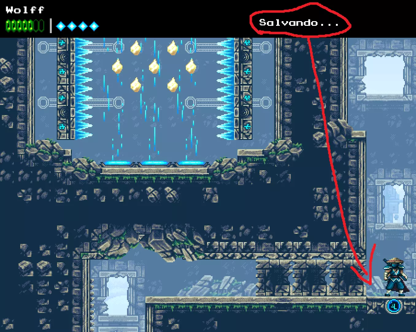 5 - 返回存档平台。注意屏幕顶部会显示正在保存游戏,等待文字消失后,返回游戏主菜单并重新加载存档。你会发现碎片已经重新出现,然后重复此过程直到获得所需数量。就我而言,商店里只差1个升级就能完成收集了,所以这个方法帮我快速搞定!就我而言,商店里只剩下1个升级项没完成了,所以这个方法帮我快速搞定了!