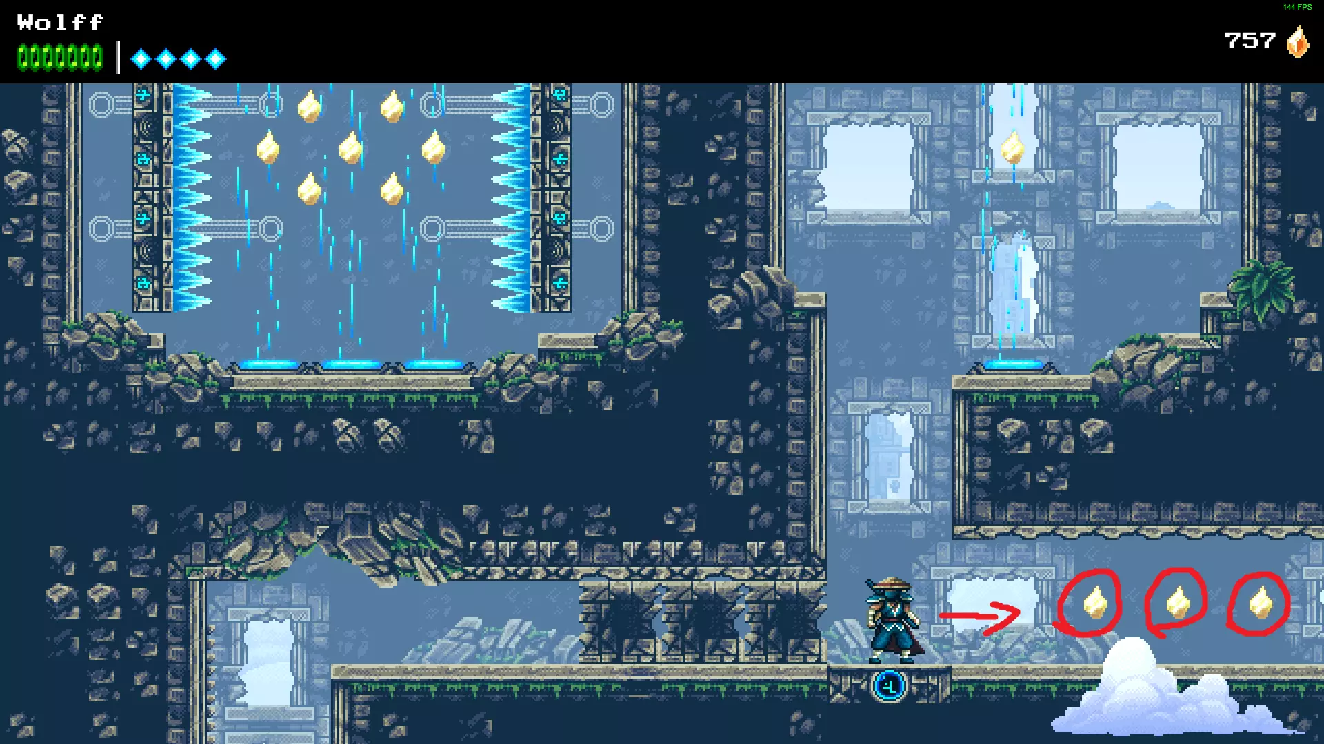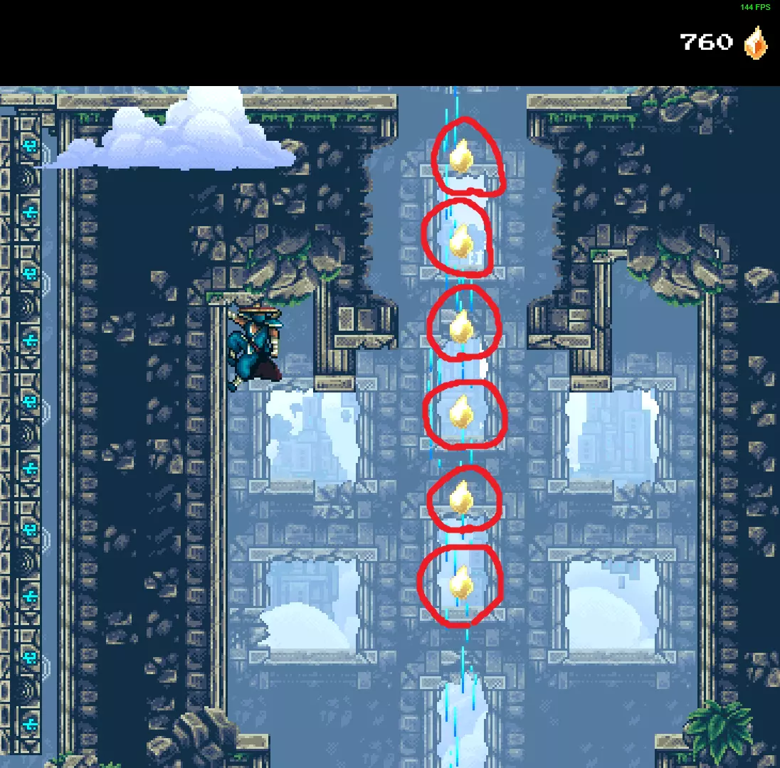 1 - 剧透内容 -> 在进行时间旅行后,来到云端废墟,第二次逃离巨龙之后。你会到达一个包含41个时间碎片的关卡,获取起来相当容易。 2 - 从底部开始,在存档点之后,先收集你右侧的3个碎片。