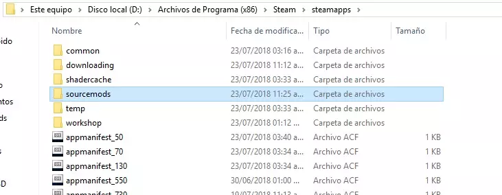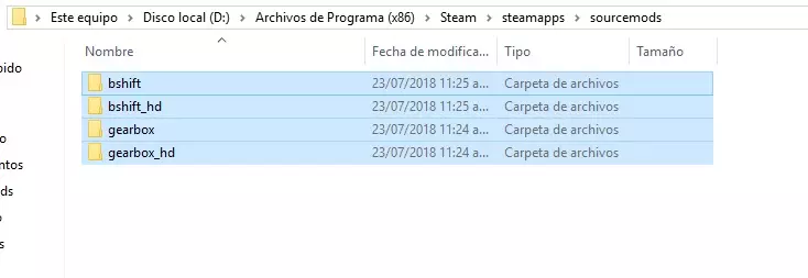 选中这4个文件夹后,将它们复制并粘贴到以下路径(以我的情况为例):D: Archivos de Programa (x86) Steam steamapps sourcemods