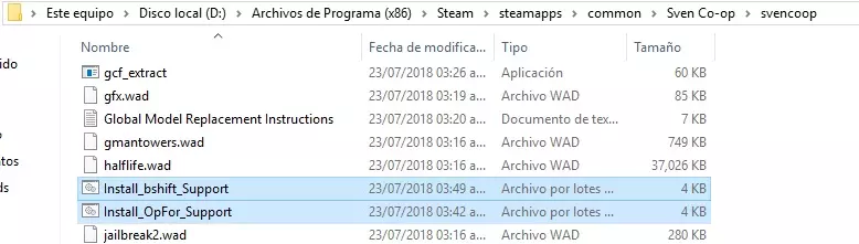 在svencoop文件夹中,你会找到两个扩展名为.bat的文件,分别名为Install_bshift_Support和Install_OpFor_Support。