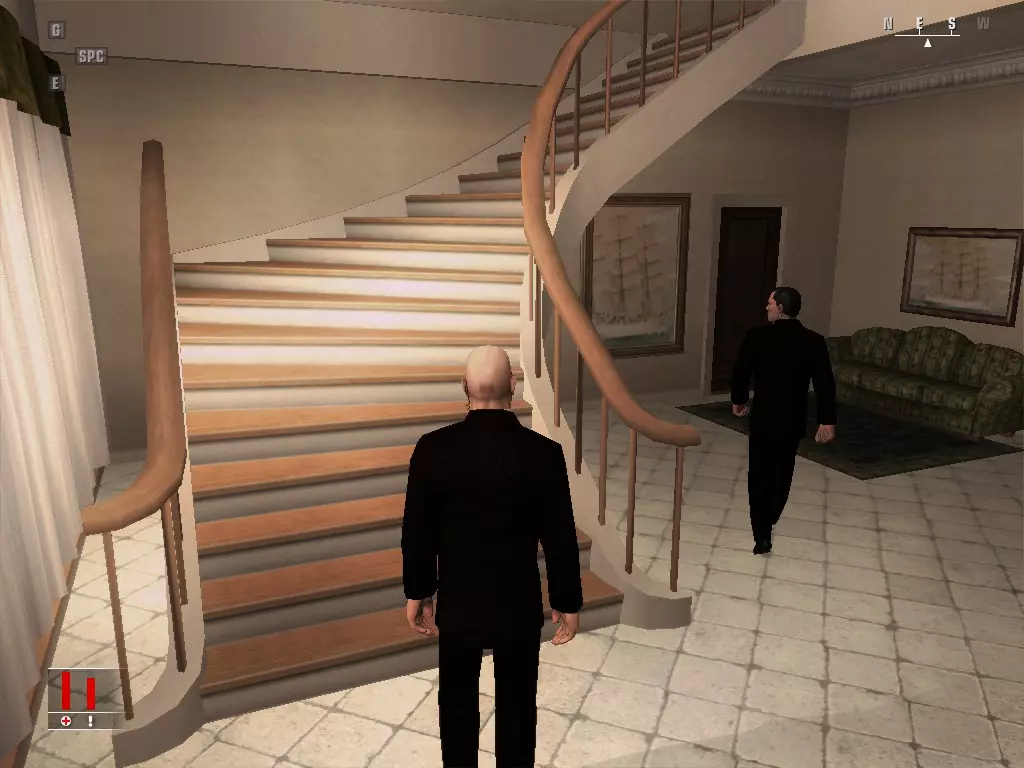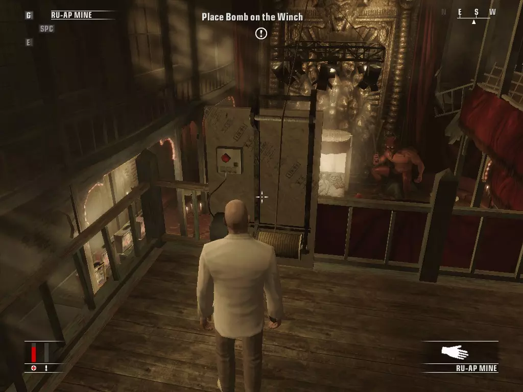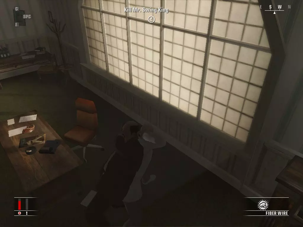 杀死目标,捡起照片并从窗户离开。拿起炸弹,前往另一扇窗户。