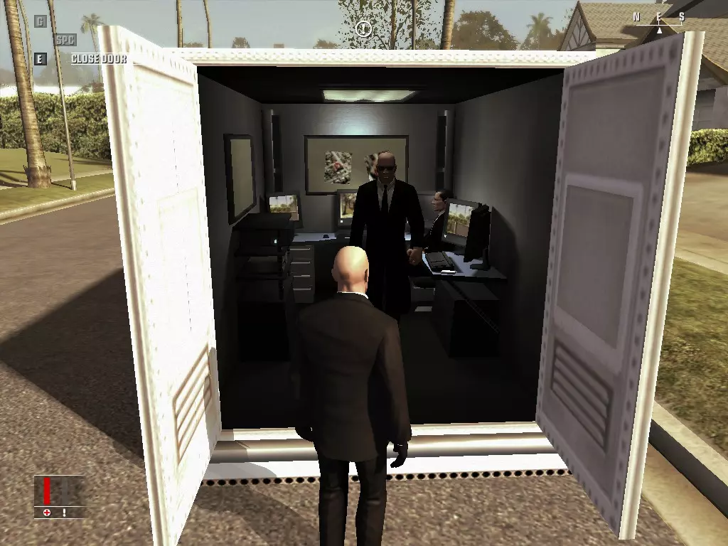 复活特工,然后走出停尸房内标有出口的门。 新生活 在“新生活”任务中,如果一切顺利,你总共只需击杀四个人。首先,沿着街道走,直到你发现停在宠物诊所前的白色面包车。当你朝它走去时,避开那个跑步的人,否则他会沿着人行道跑起来,可能会带来麻烦。现在打开白色面包车,确保车门能挡住左右两边的人,然后杀死车内的两名守卫。