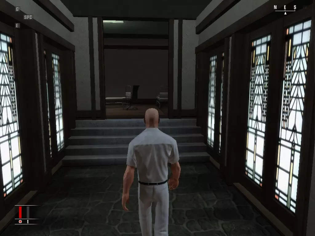 【心跳停止】 这个成就相对简单,前提是不被发现,一旦被发现,你就有点麻烦了。你会在大门外出生,首先要做的就是跑向主楼。有一名守卫在大楼左侧巡逻,要在他到达大楼中部之前将其击杀,然后偷走他的衣服。穿过大楼前门,径直走过接待处,你会看到一个有地球仪的房间,在不被发现的情况下杀死里面的人。