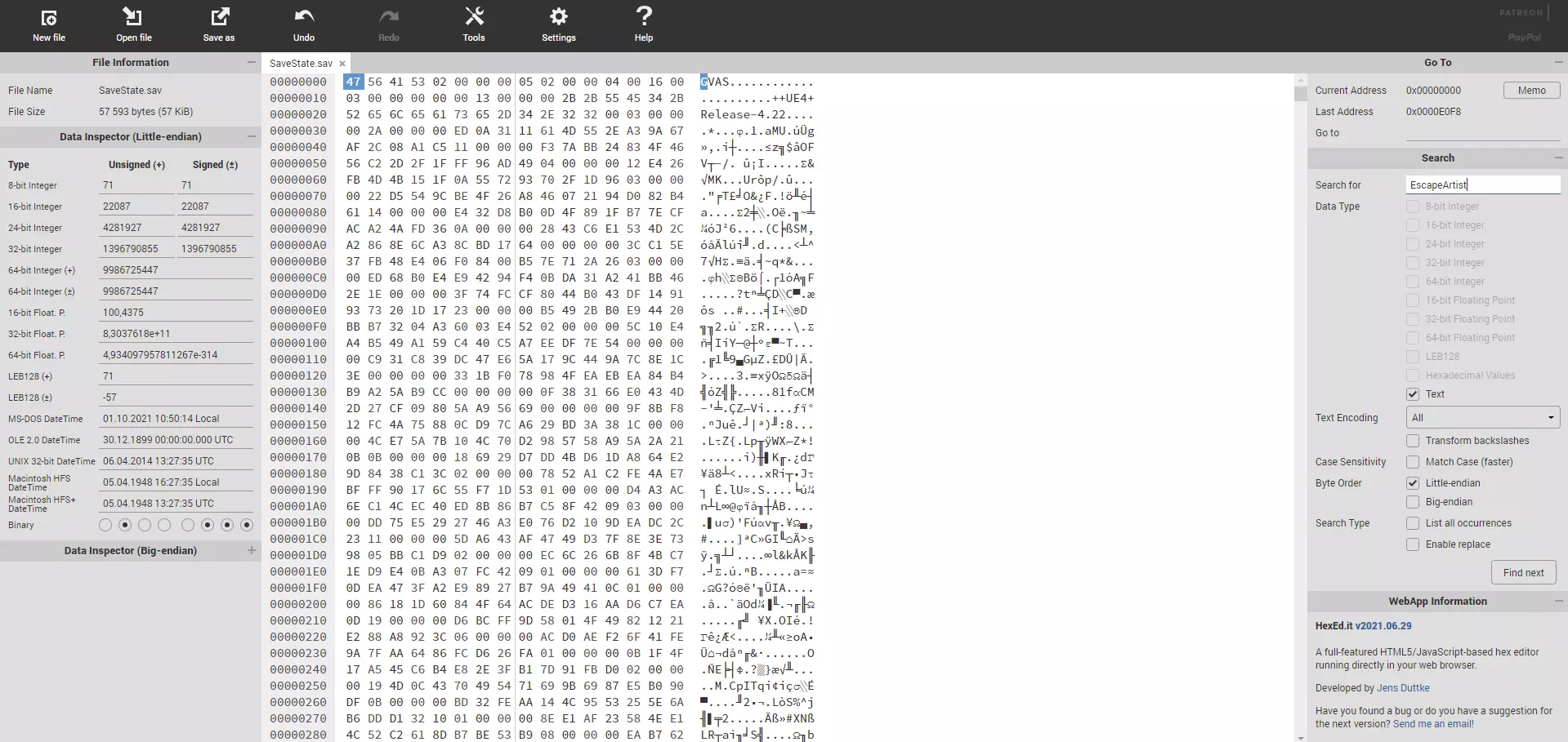 2. 在搜索栏中输入EscapeArtist并点击回车。每个存档槽有3个匹配项,因此请确保为所需的存档槽进行编辑。