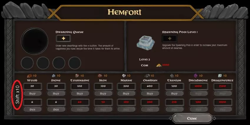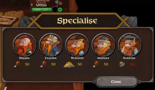 在你的HUD右下角,你会看到【要塞】图标。通过该图标,你可以从【要塞】中生成矮人幼崽。它们会按照固定的时间间隔逐个出现。因此,如果你急需军事矮人,最好提前准备好矮人幼崽,因为等待幼崽生成需要一定时间。当你的矮人幼崽准备就绪时,敌人可能已经接近你的王座室,并在途中摧毁了一些物品。 【要塞】图标窗口不仅能让你生成矮人幼崽,还可以提升你的生成池等级,进而提高你的最大人口上限。 如何移除矮人? 如果出于某种原因你需要移除矮人,可以使用【出售】选项(按键4),然后点击你想要移除的矮人。你可能会问,为什么会有人想卖掉自己的矮人呢?比如说,如果你有太多挖掘者,而你需要更多工人,你就必须驱逐一名现有的挖掘者,然后生成一个新的矮人宝宝。这是因为一旦分配了职业,就无法更改他们的专精。这也意味着你要卖掉10级的挖掘者,生成1级的矮人宝宝,然后让他成为1级的工人。所以,要规划好如何分配你的矮人。等级的损失就是时间的损失。 矮人宝宝