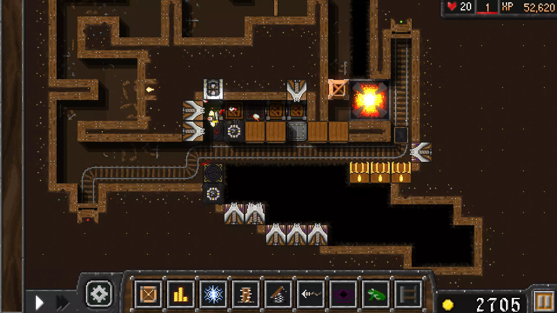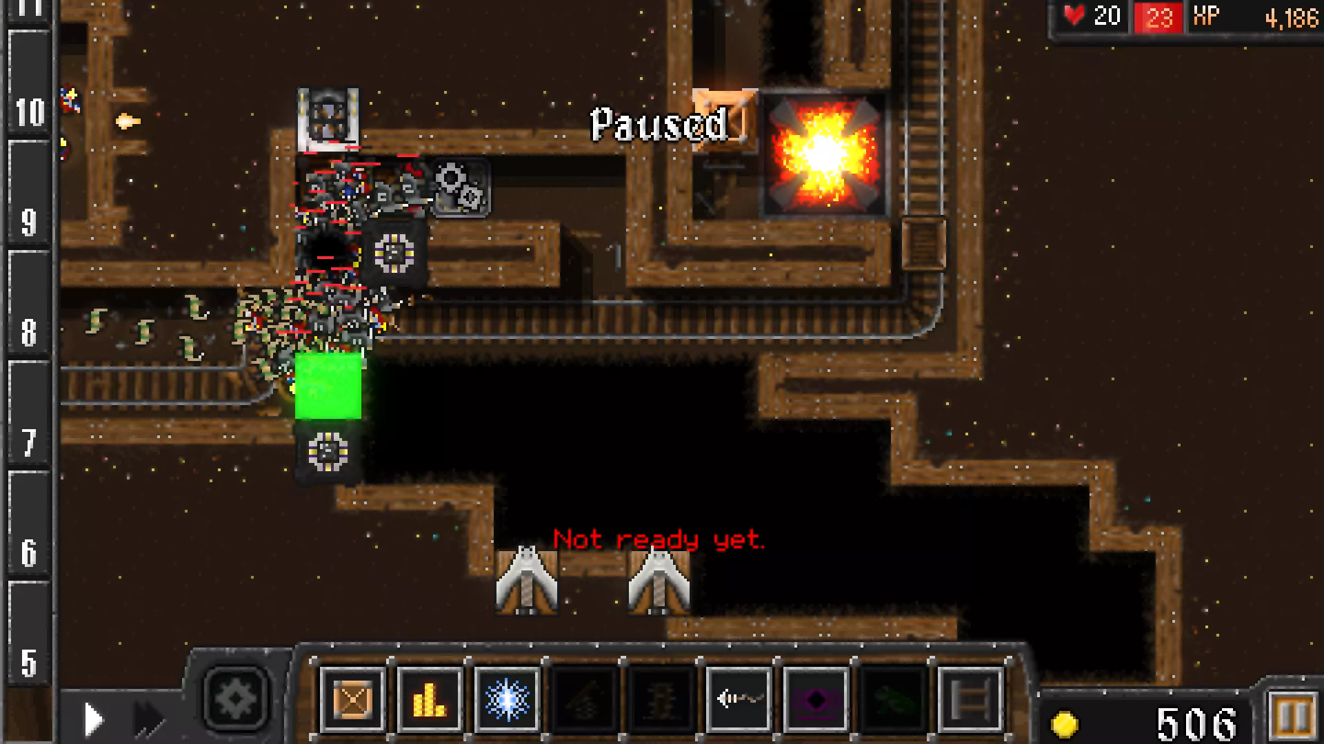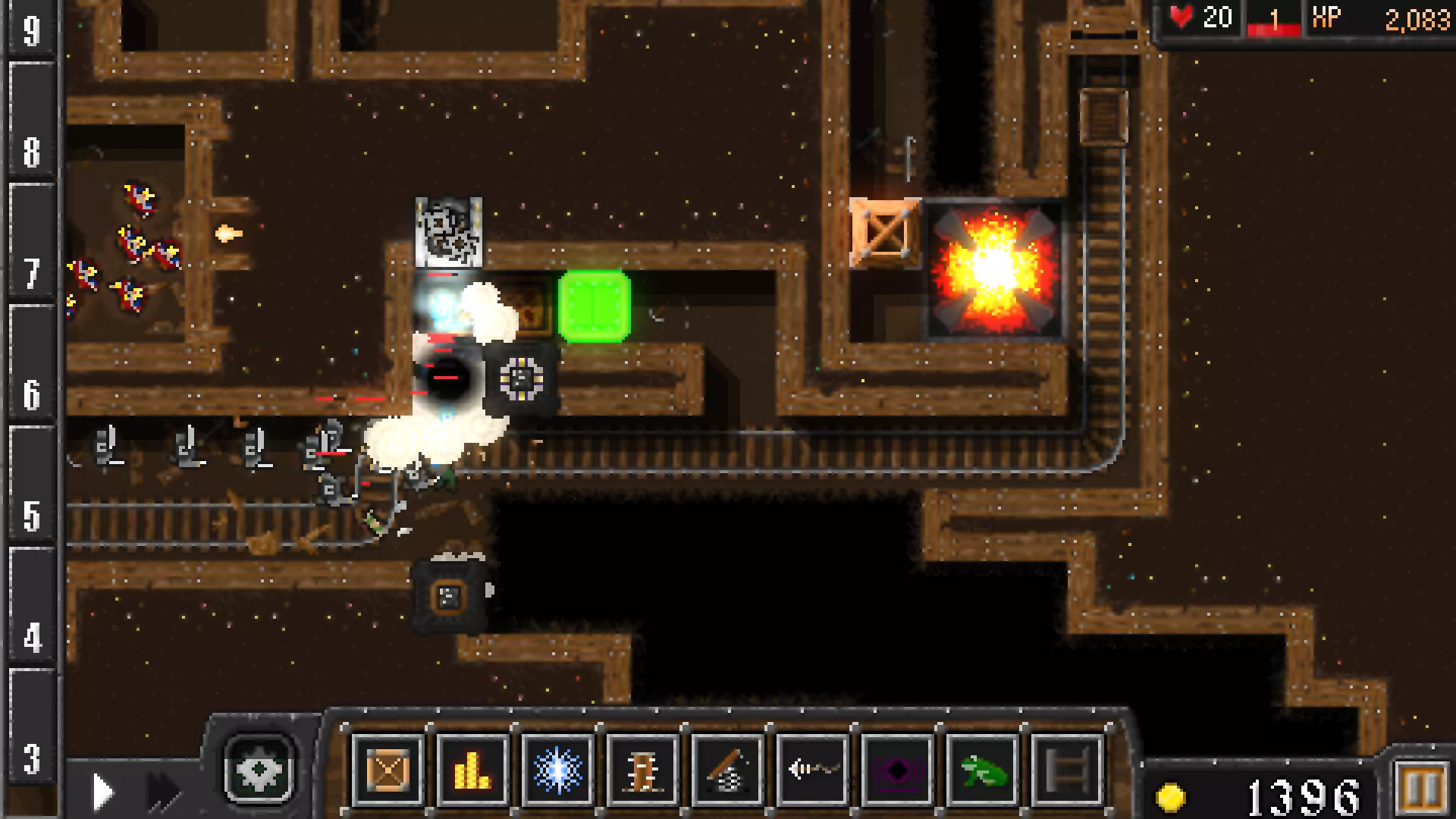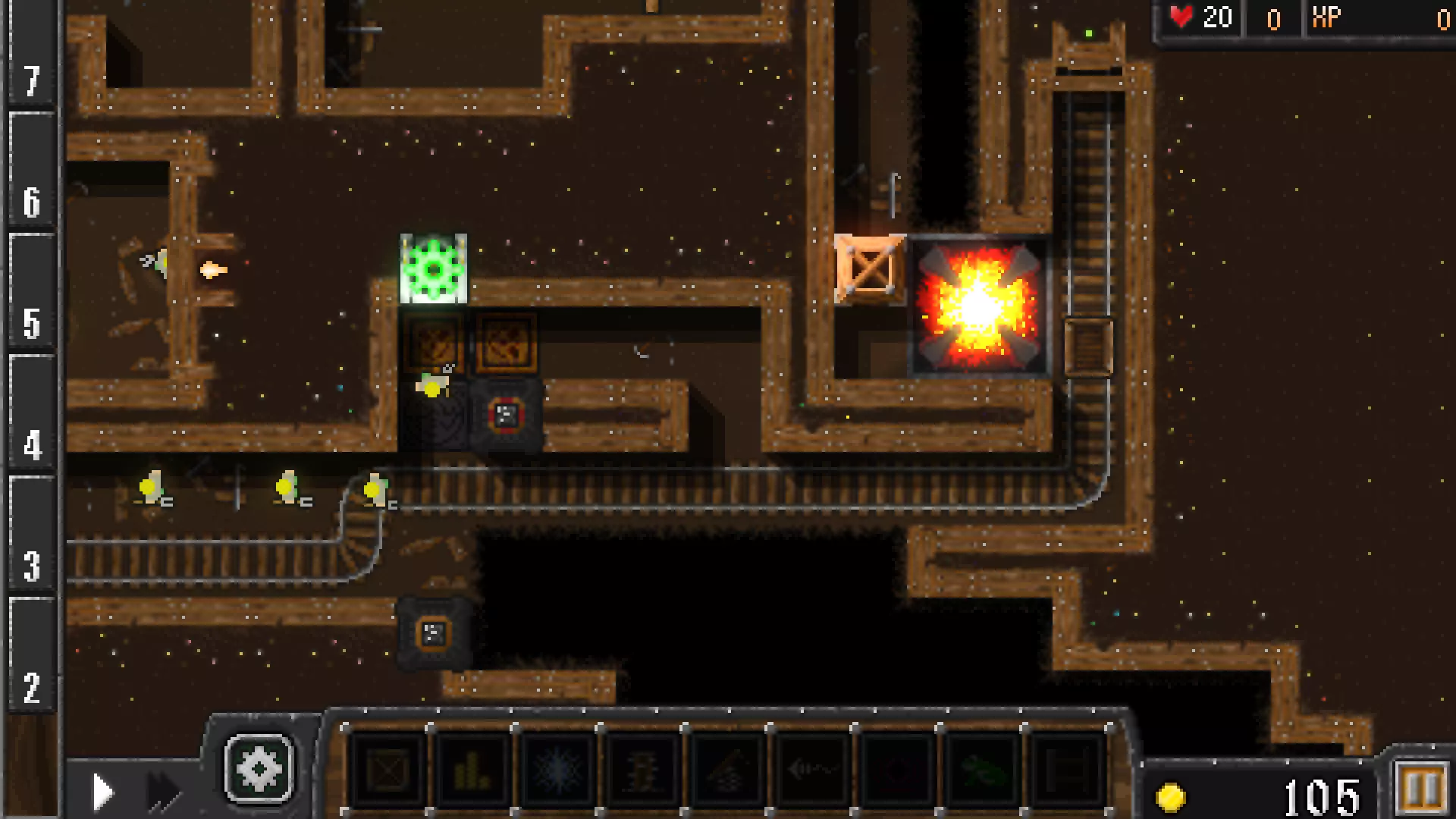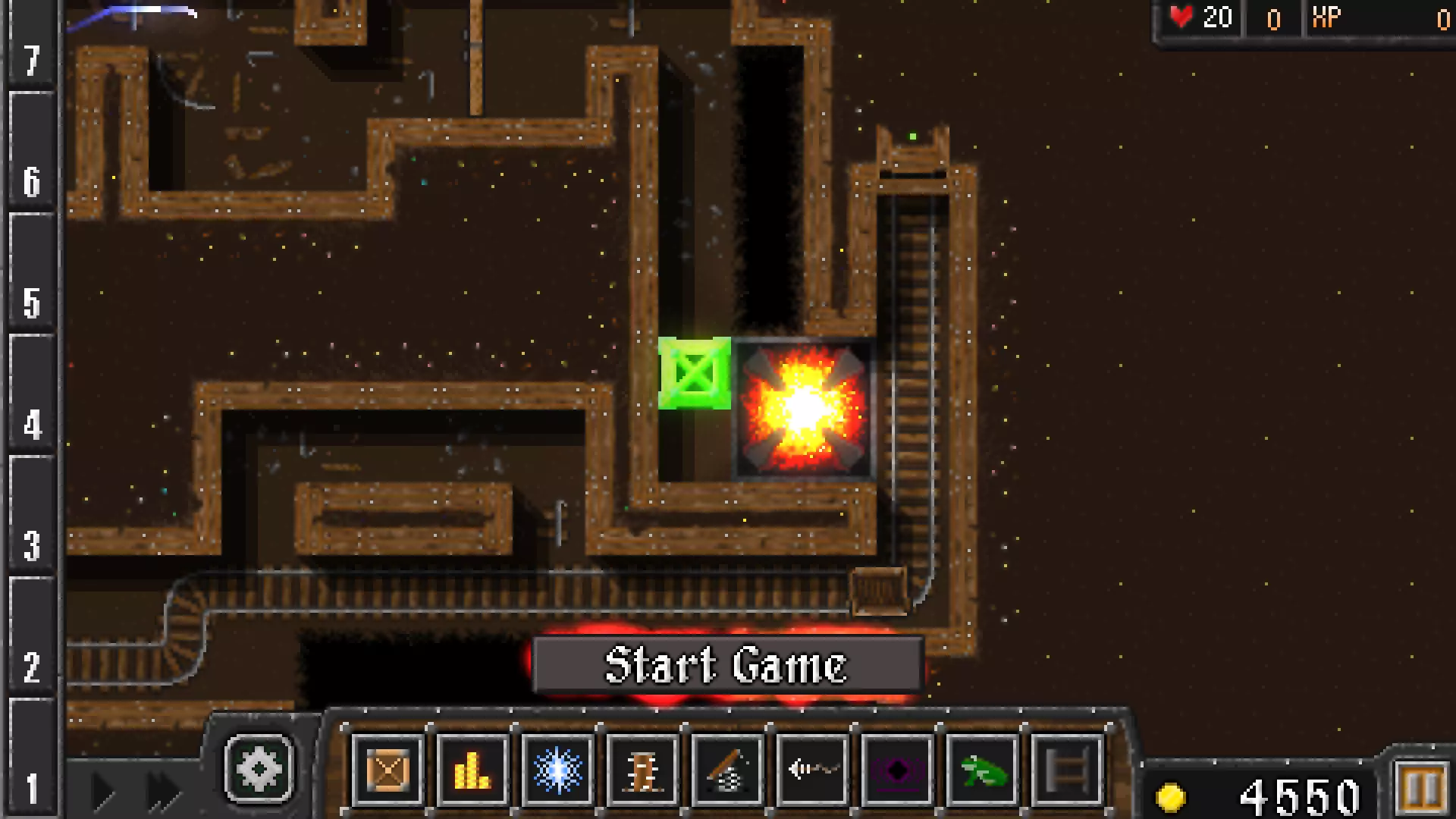 有时,当道路被阻挡或炸弹爆炸时,敌人会走向铁轨。这种情况下,设置一个鱼叉陷阱并迅速将它们击落。如果不迅速击落,它们会与下一个炸弹车相撞并爆炸,导致难以完成成就。另外,如果你有足够的金币,添加下方的黑洞,并将下方的灵魂收集器升级到4级。4. 后期回合
