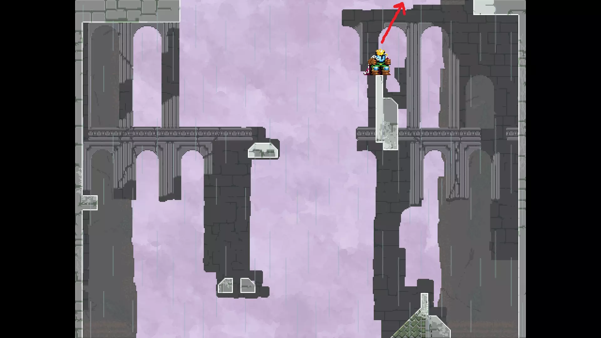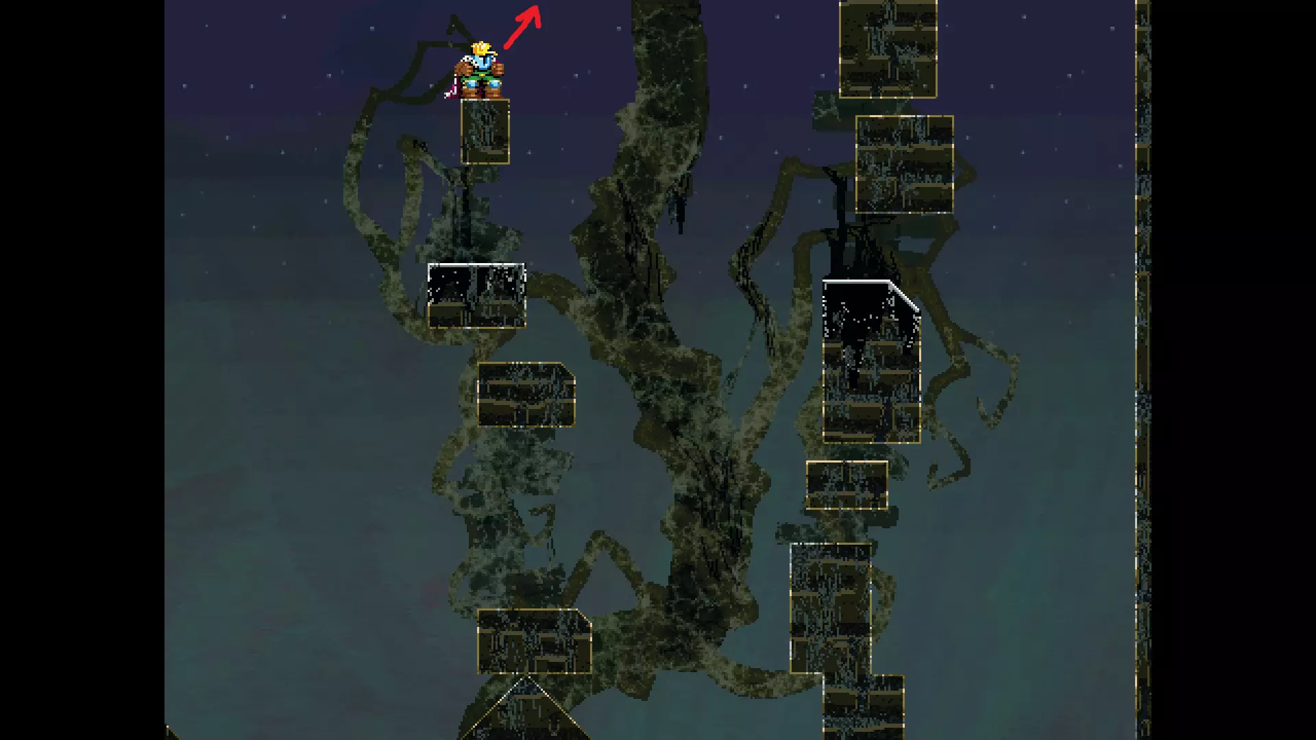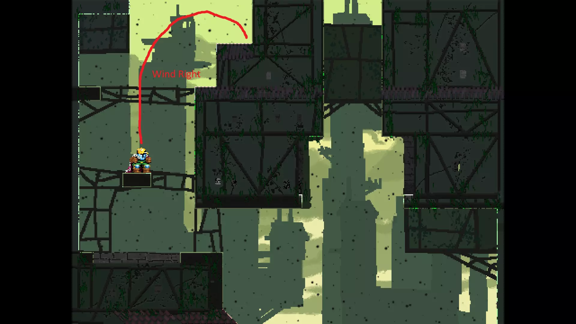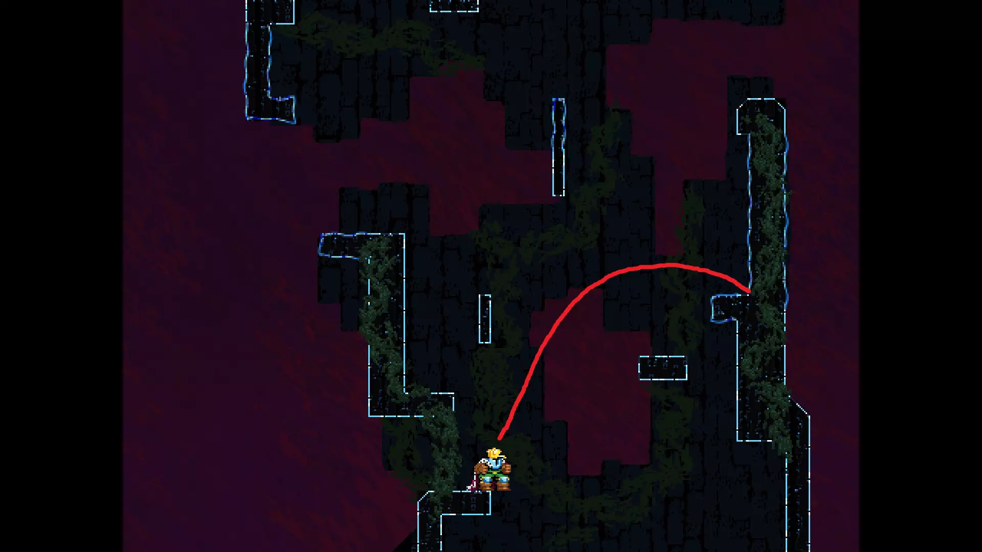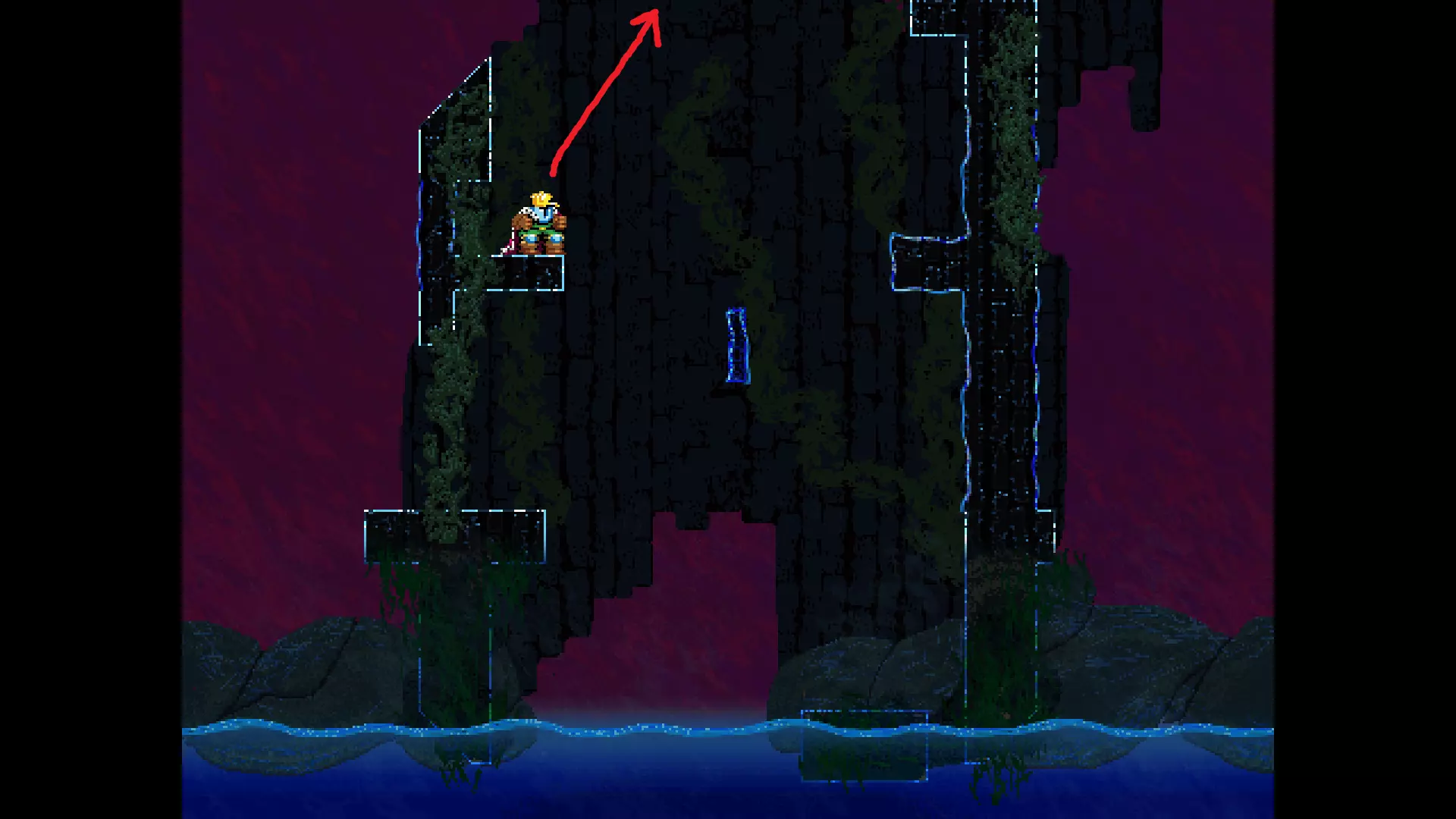 请注意,以下跳跃需要【亚像素级】的精准操作。即使你处于这个精确像素位置,也可能无法成功,除非你使用蛇形戒指稍微向右移动,确保自己处于正确的亚像素位置。