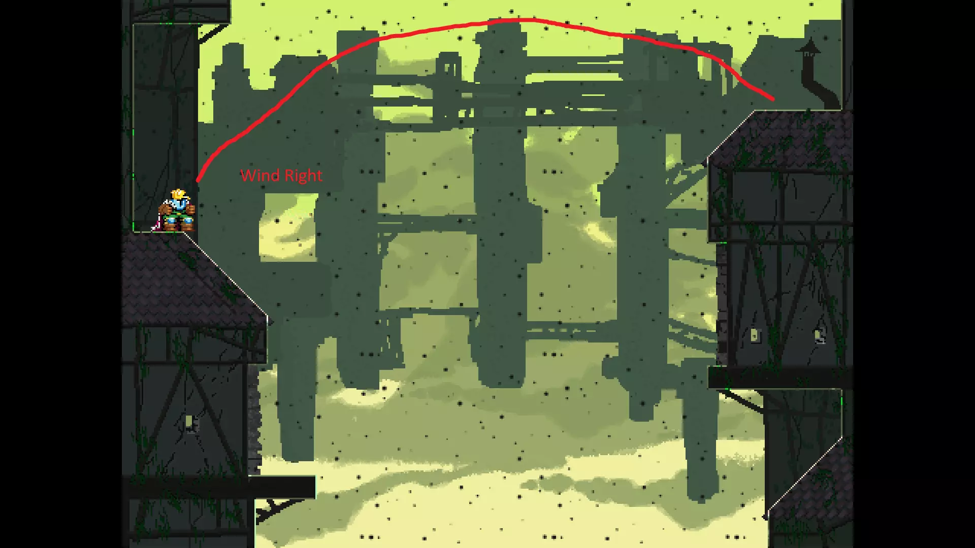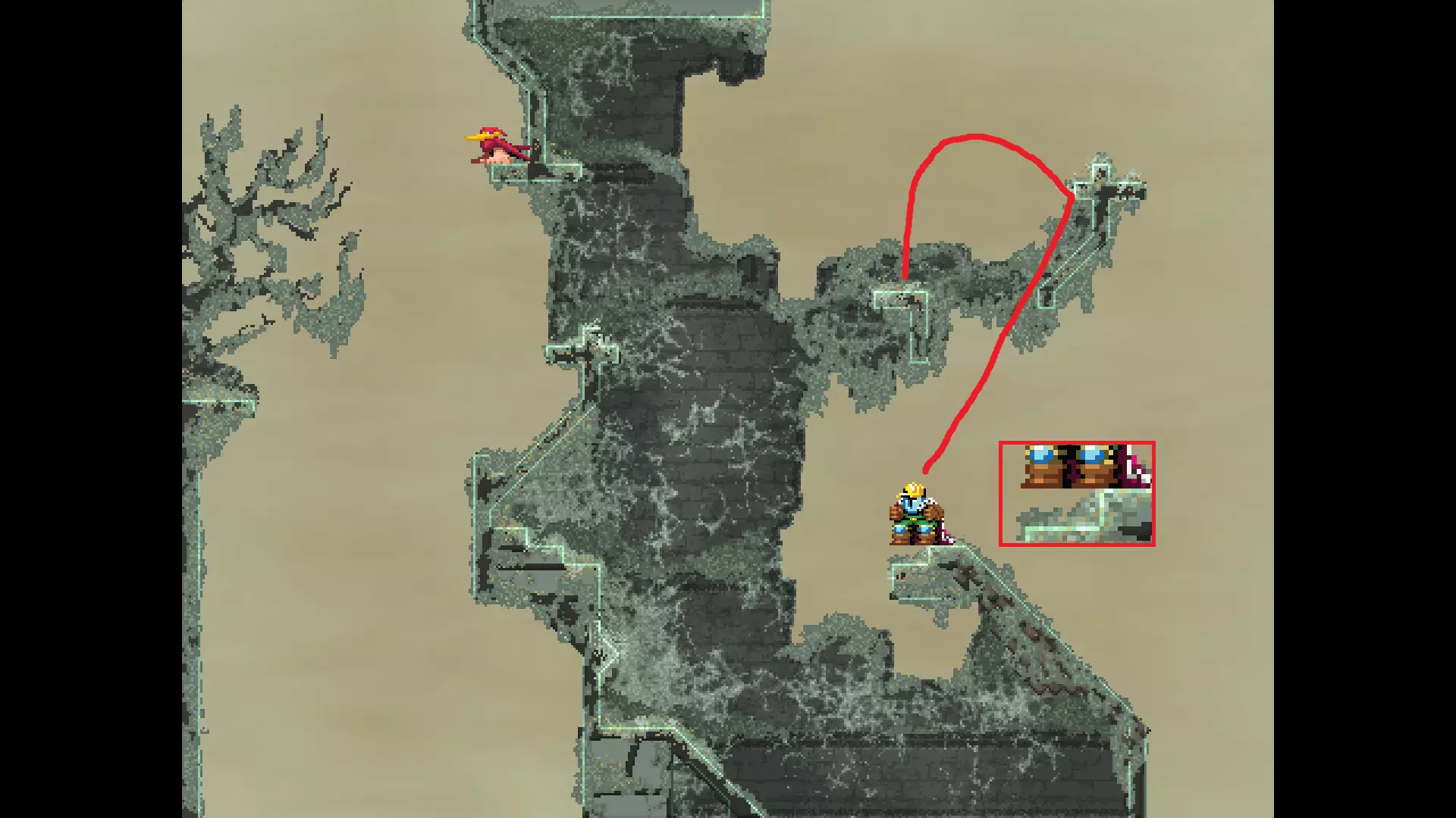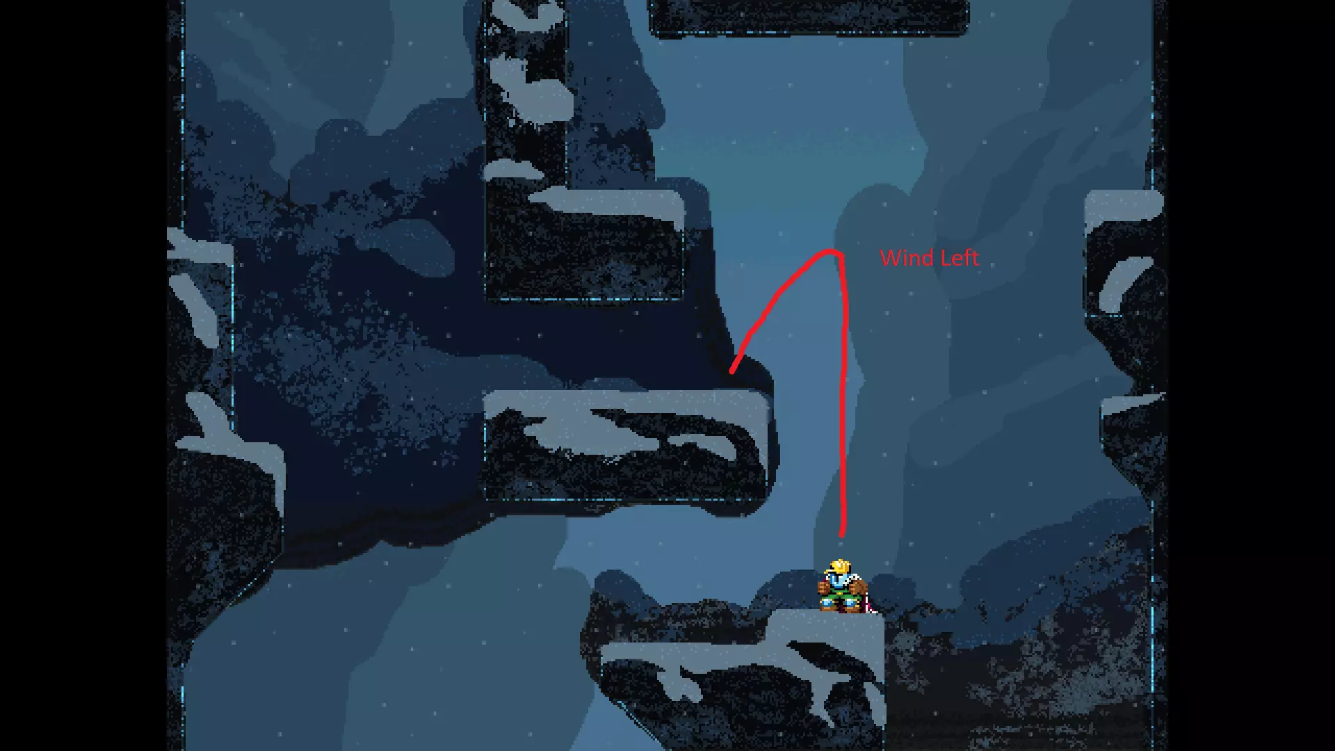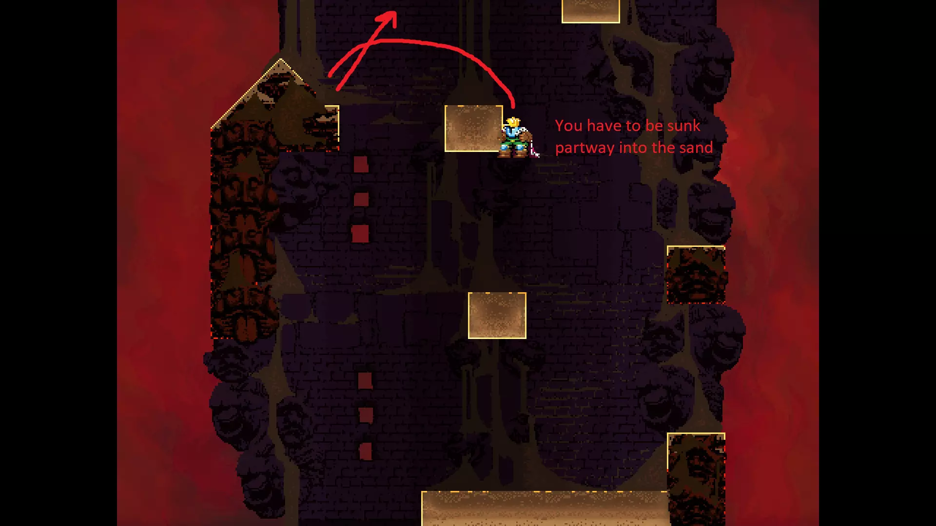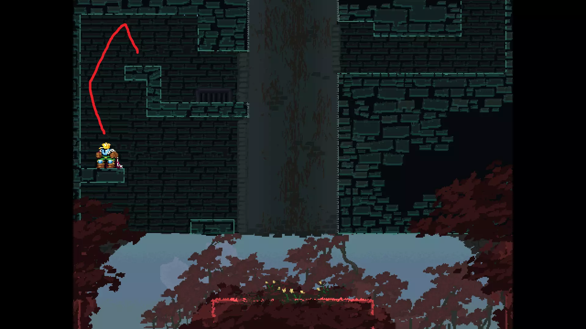 请注意,以下跳跃需要【亚像素级】的精准操作。即使你处于这个精确像素位置,也可能无法成功,除非你使用蛇形戒指稍微向右移动,确保自己处于正确的亚像素位置。