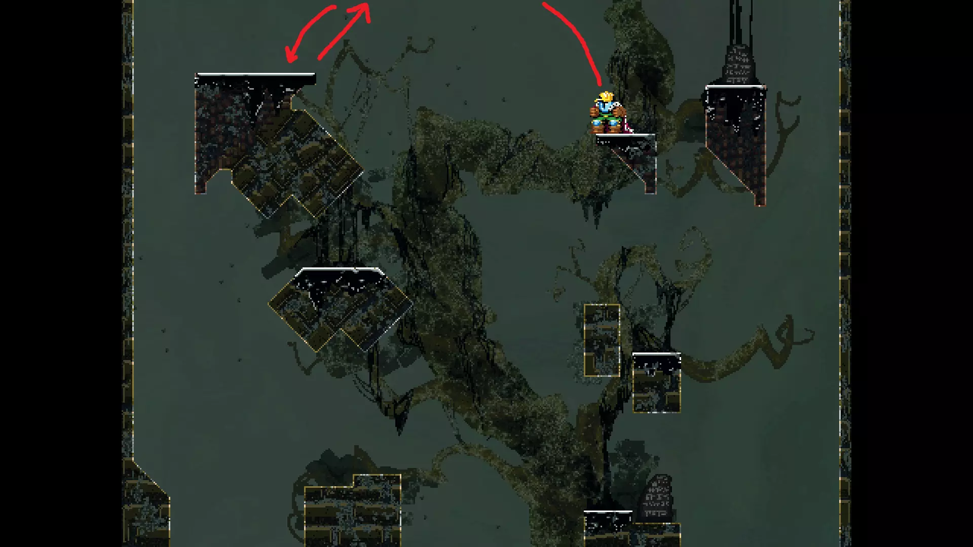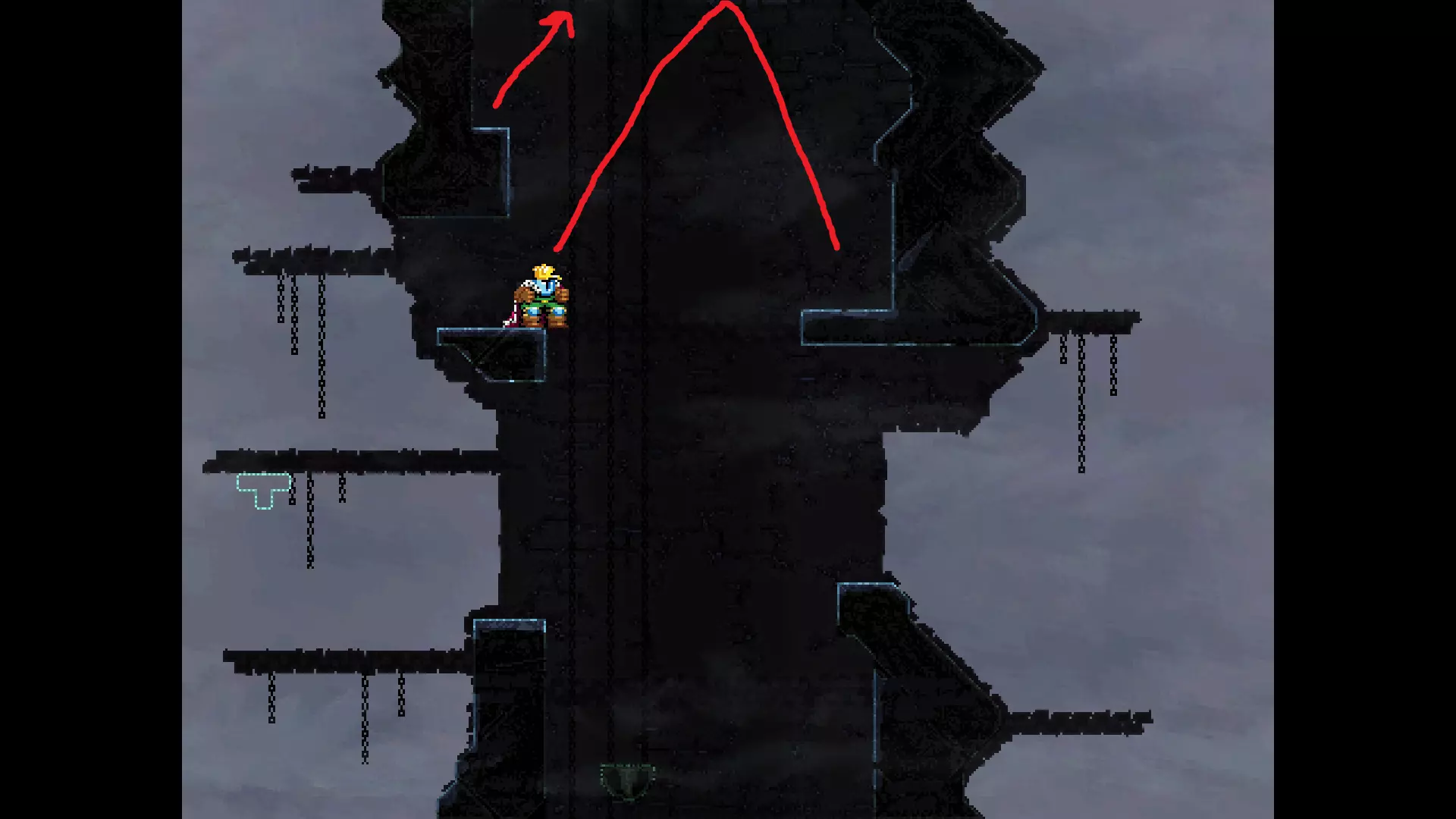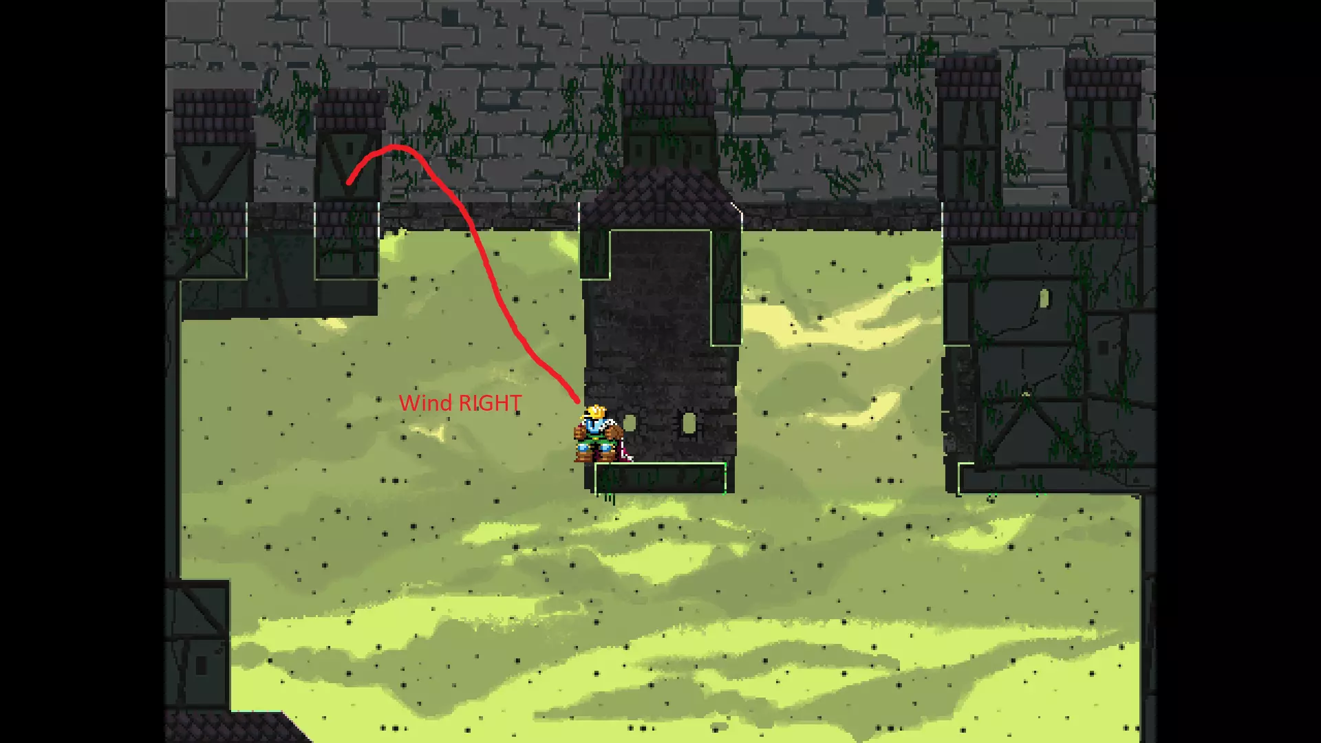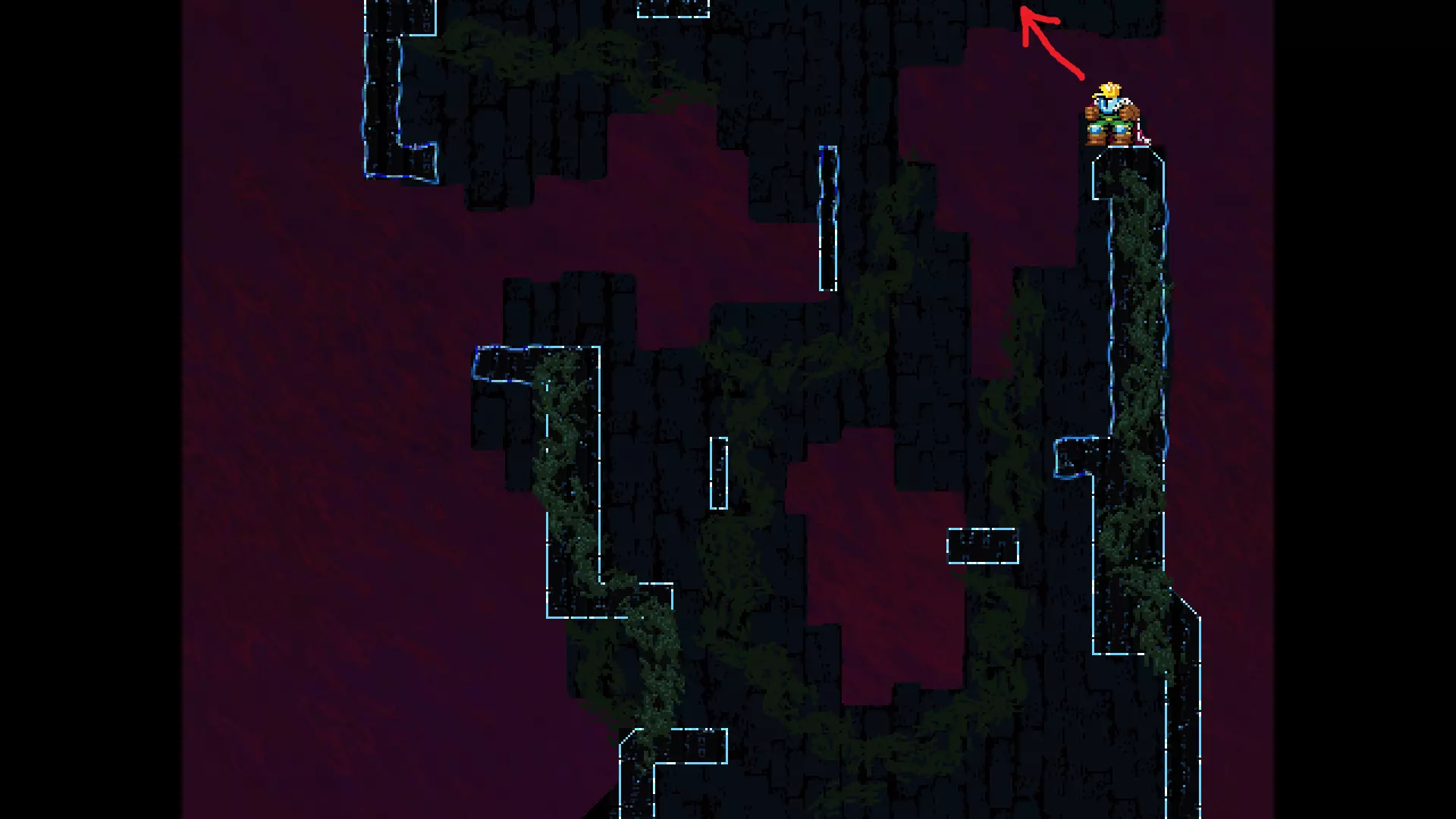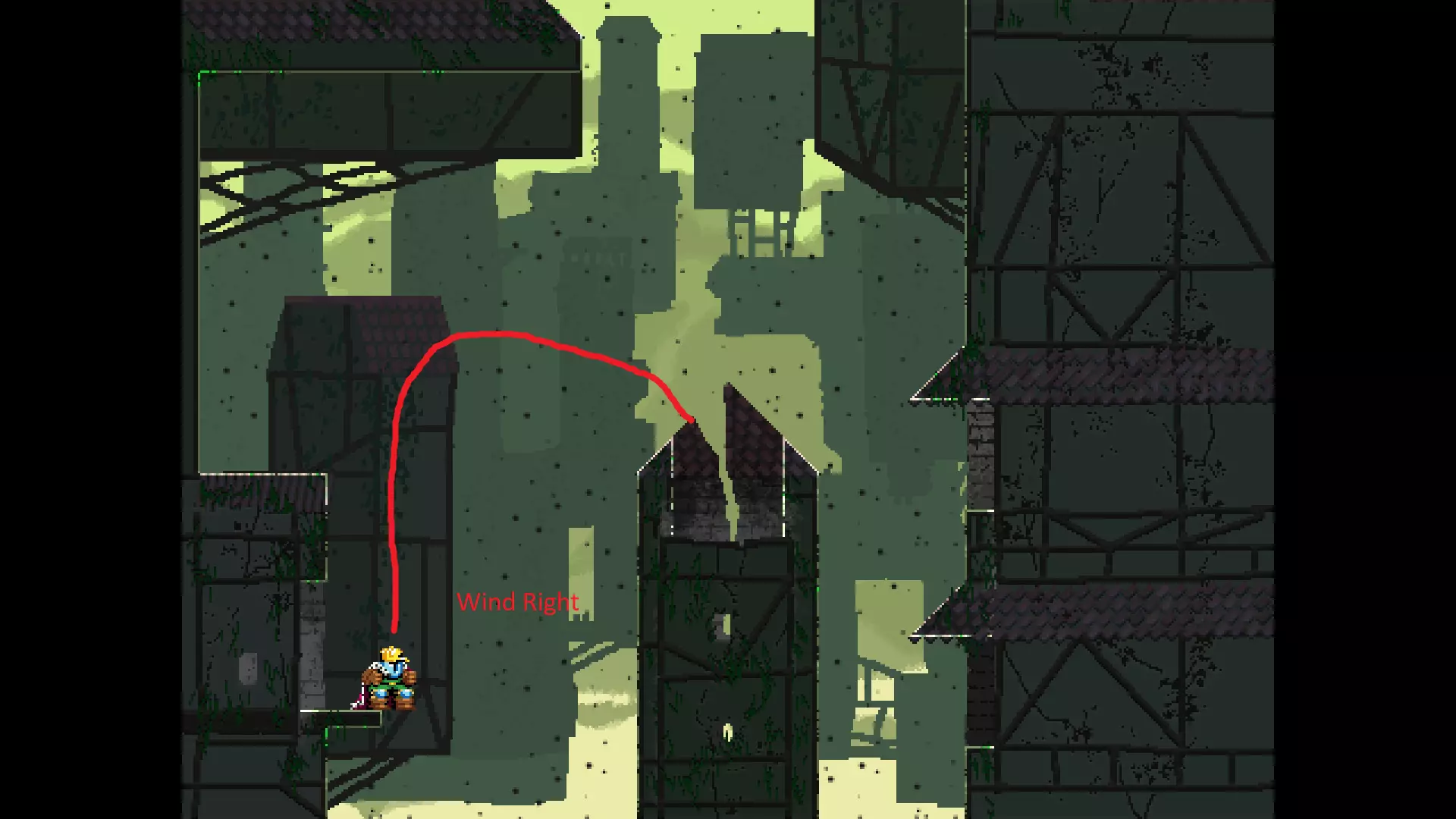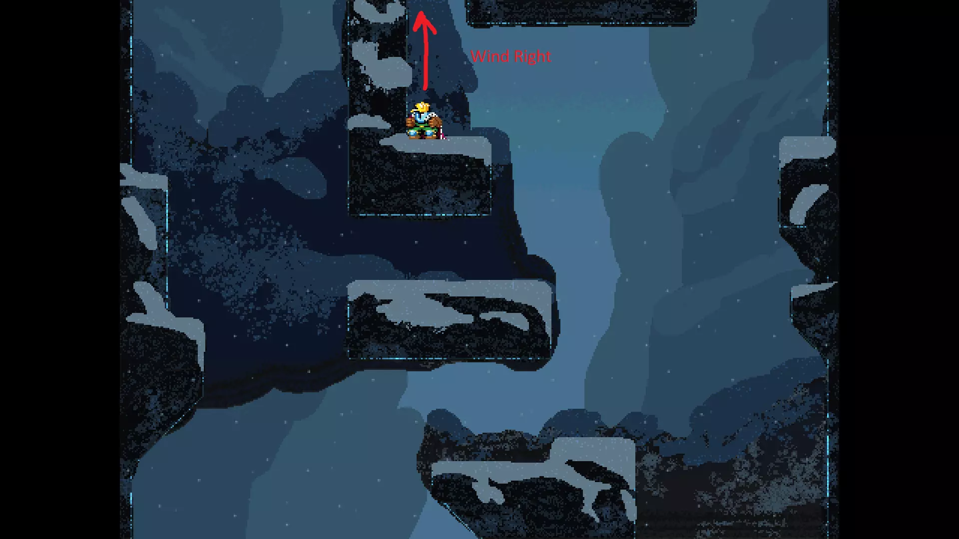 请注意,以下跳跃需要【亚像素级】的精准操作。即使你处于这个精确像素位置,也可能无法成功,除非你使用蛇形戒指稍微向右移动,确保自己处于正确的亚像素位置。